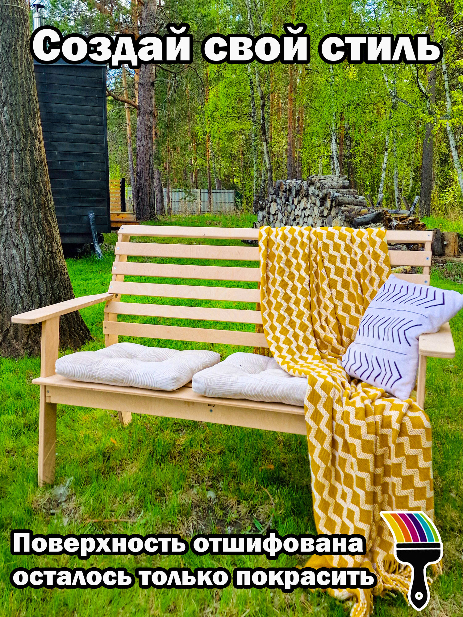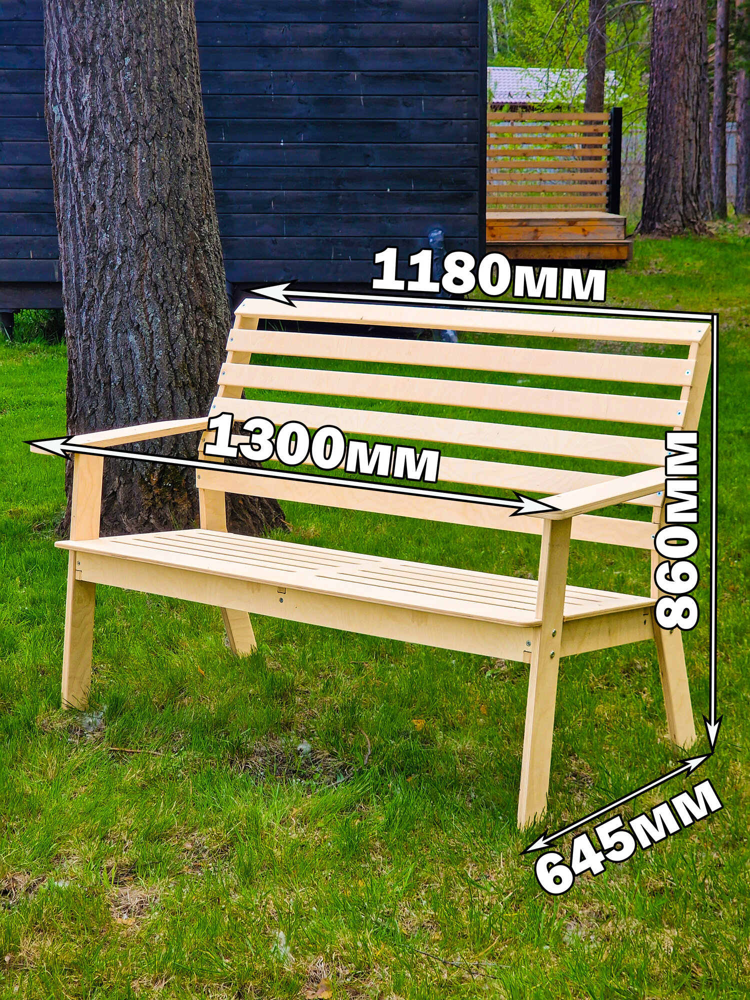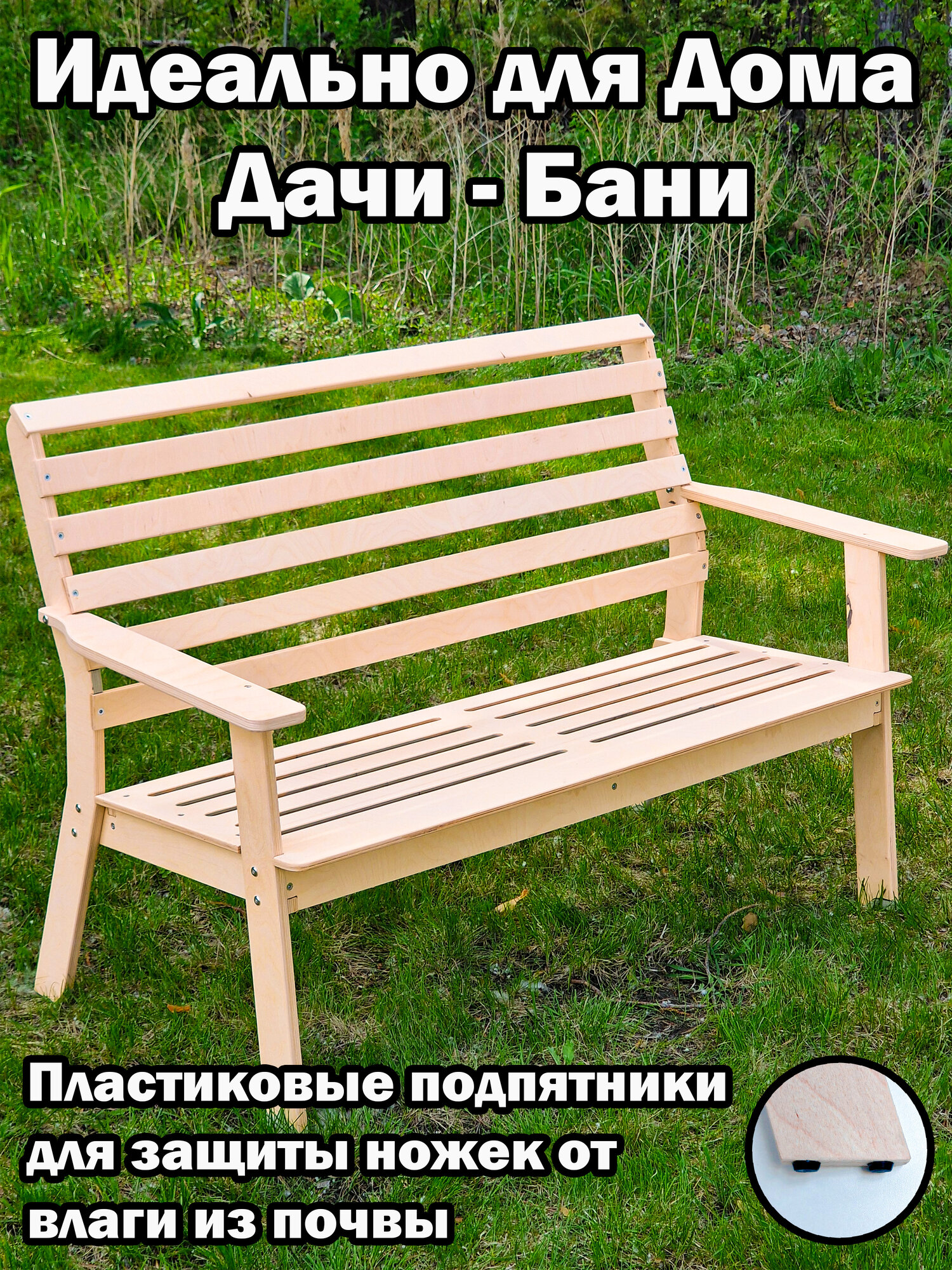 Скамейка садовая Классика с деревянными спинкой и сиденьем без покраски, лавочка для дачи с металлическим каркасом