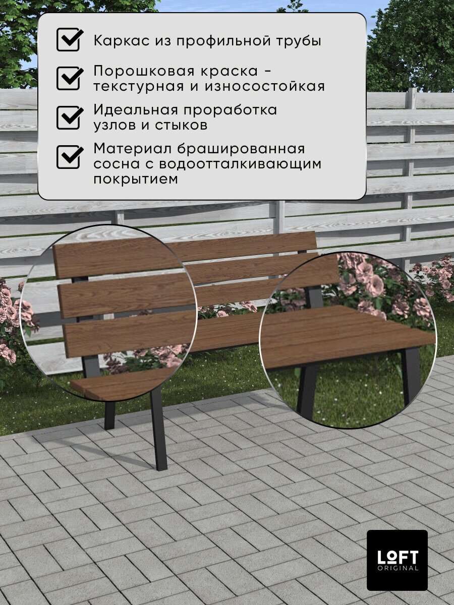 Скамейка садовая со спинкой для дачи сада темная интересное:
