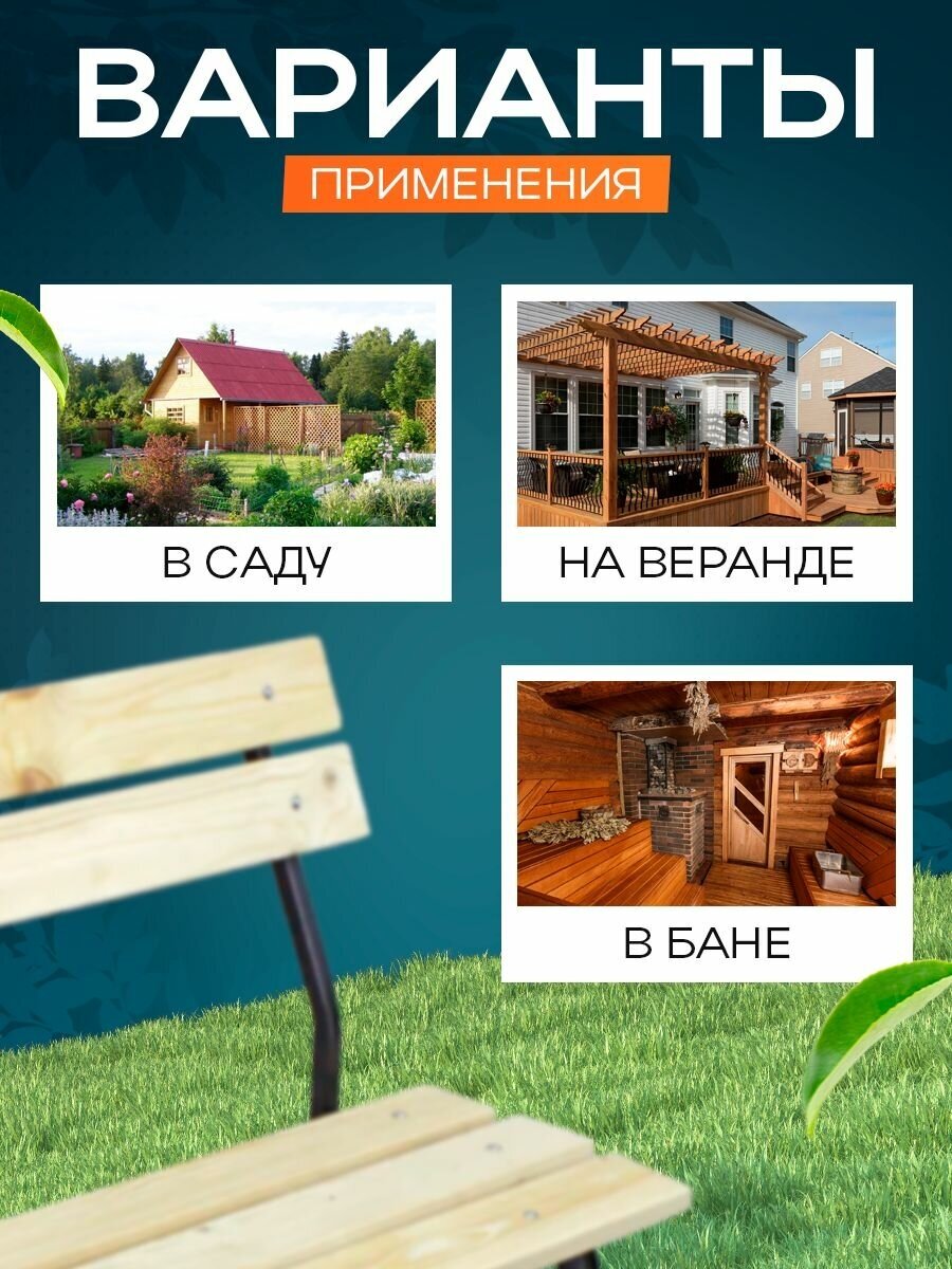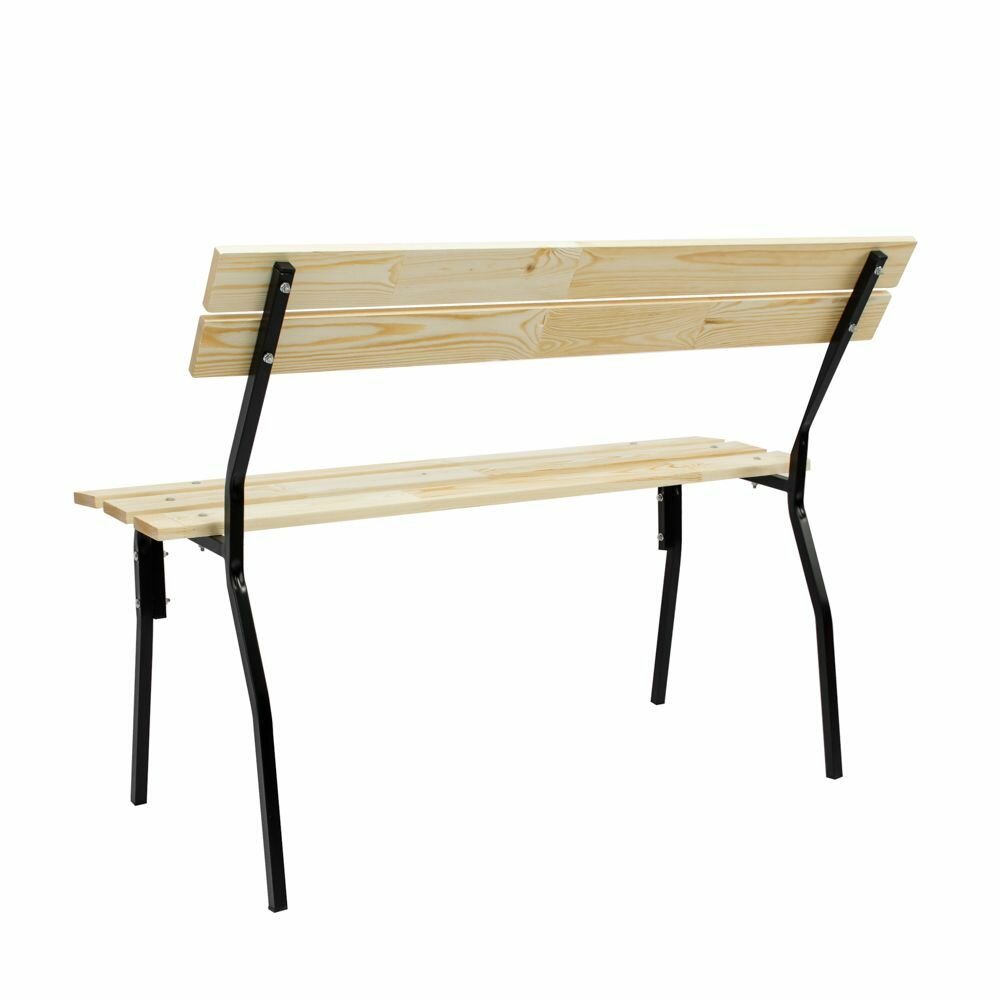 Скамейка садовая Классика с деревянными спинкой и сиденьем без покраски, лавочка для дачи с металлическим каркасом