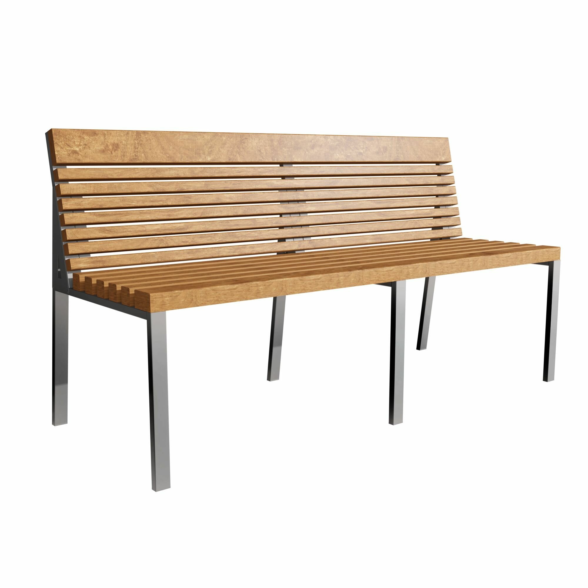 Скамейка садовая Классика с деревянными спинкой и сиденьем без покраски, лавочка для дачи с металлическим каркасом
