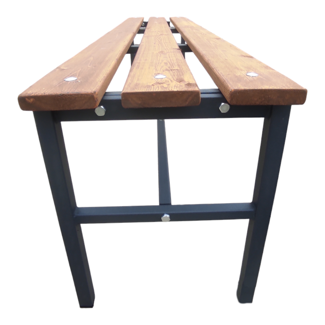 Скамейка садовая Классика с деревянными спинкой и сиденьем без покраски, лавочка для дачи с металлическим каркасом