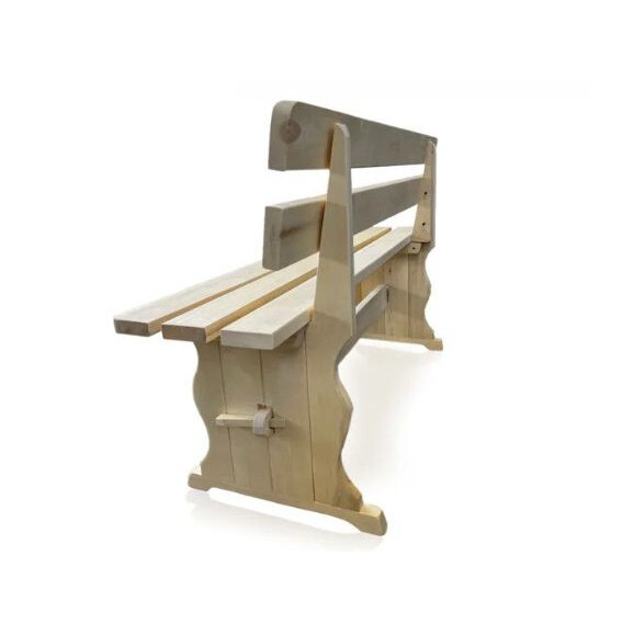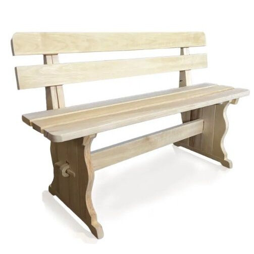 Лавка со спинкой из массива осины для бани/дома, садовая скамейка 120х85х44 см, Вологда