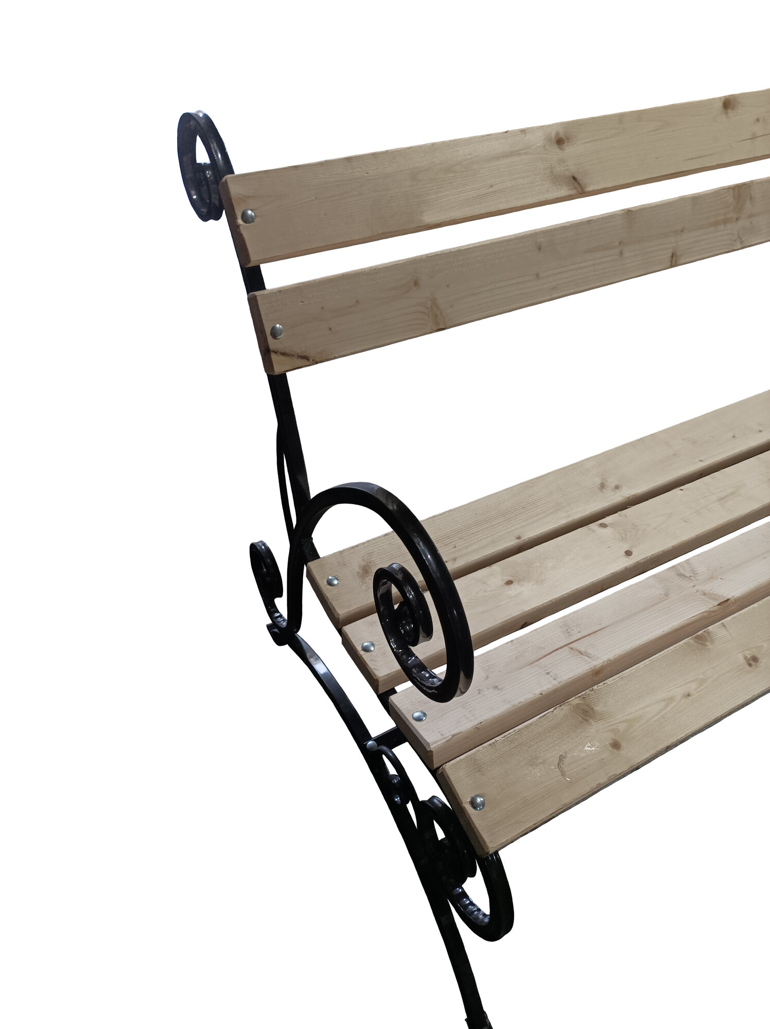 Скамейка садовая Классика с деревянными спинкой и сиденьем без покраски, лавочка для дачи с металлическим каркасом