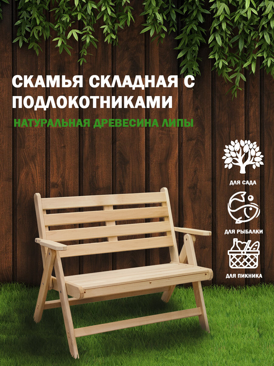 Скамейка садовая складная с подлокотниками 100х39х87 массив липы / скамья / лавочка садовая / для дачи интересное:
