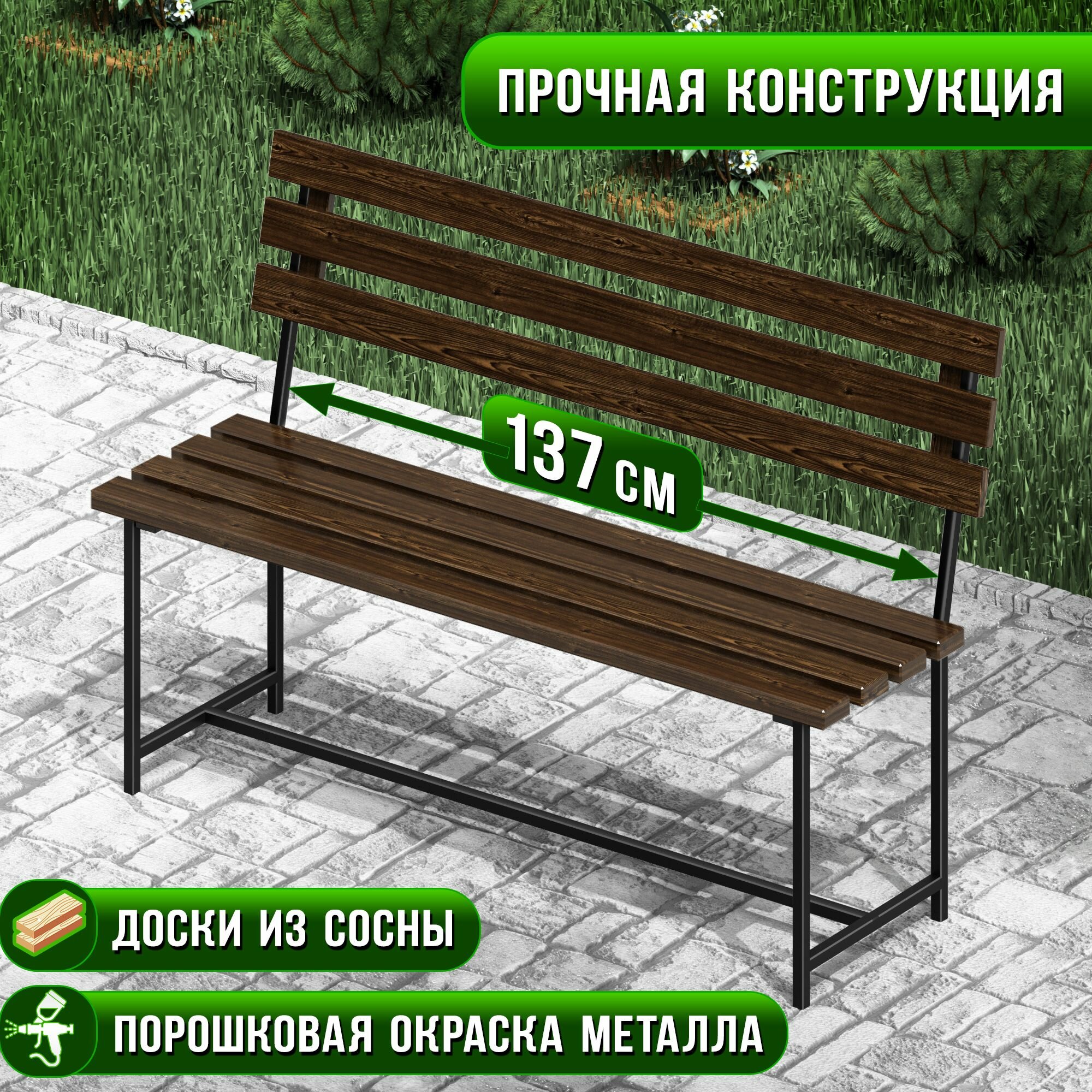 Скамейка садовая Классика с деревянными спинкой и сиденьем цвета темного дуба, лавочка для дачи с металлическим каркасом
