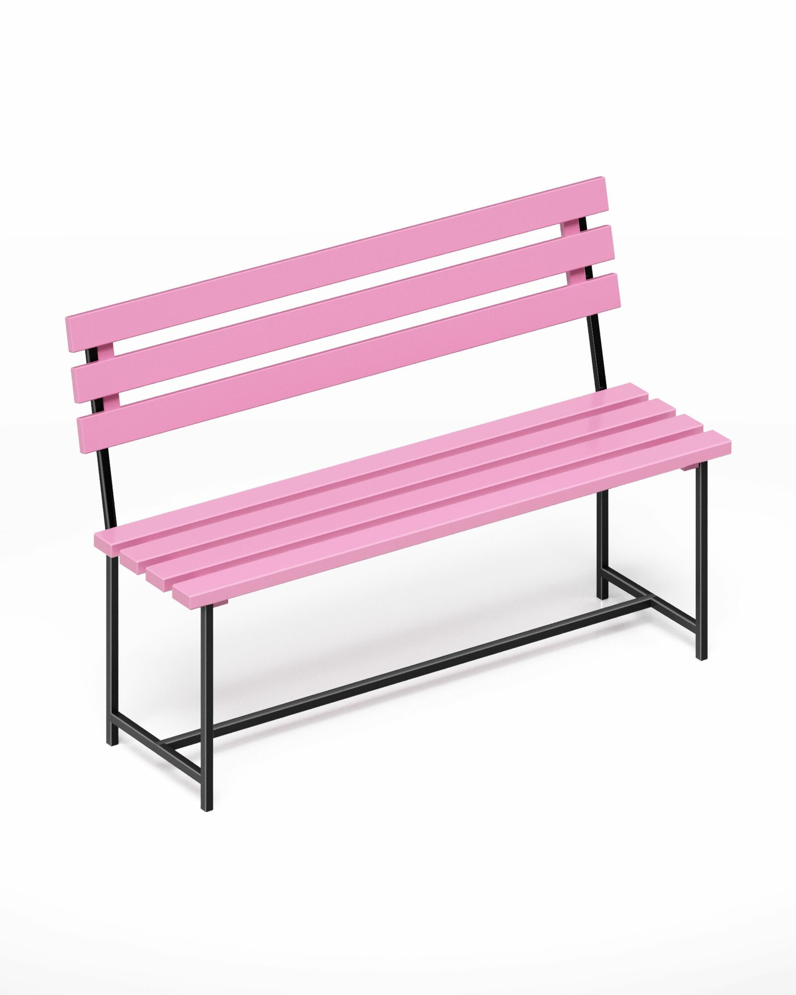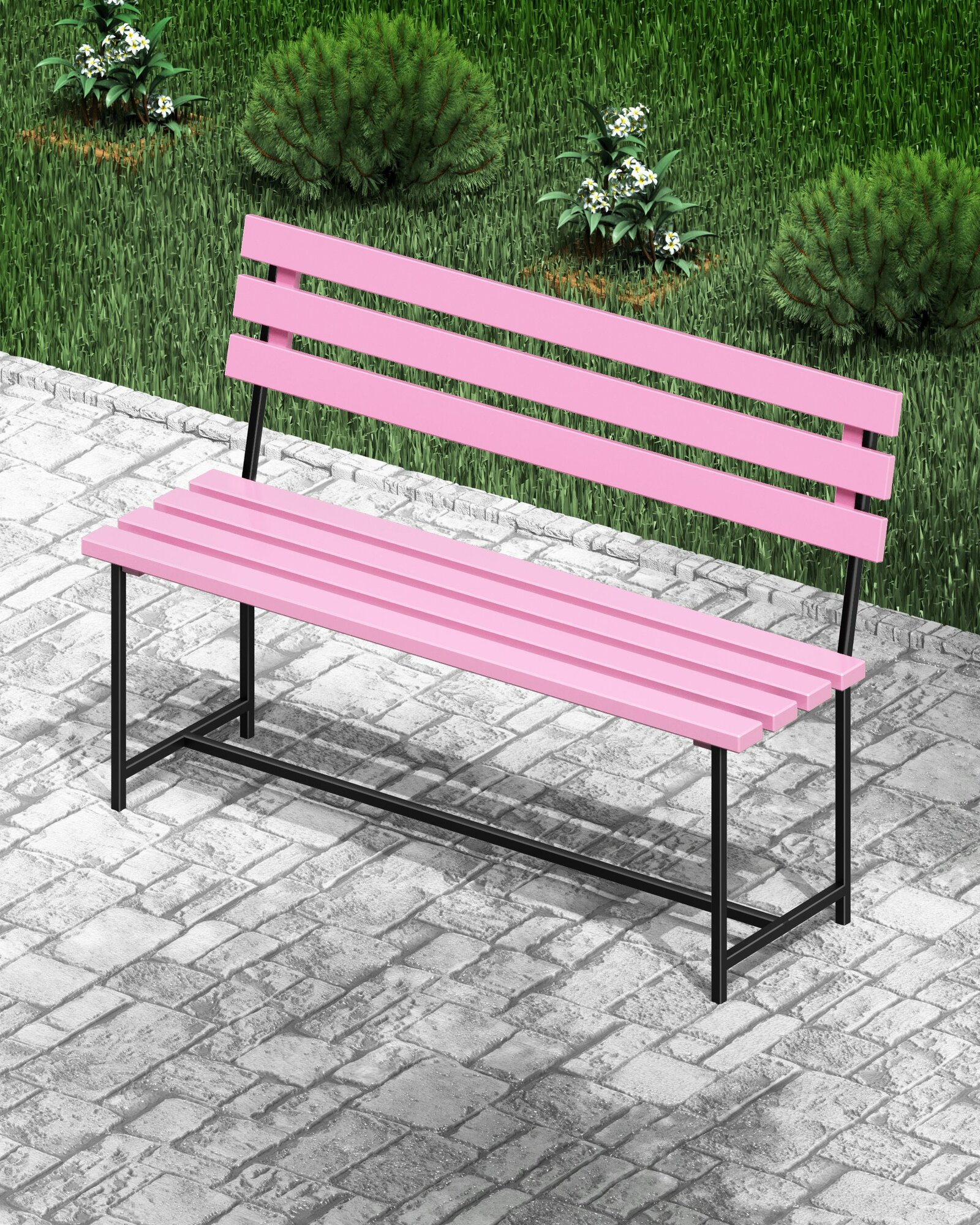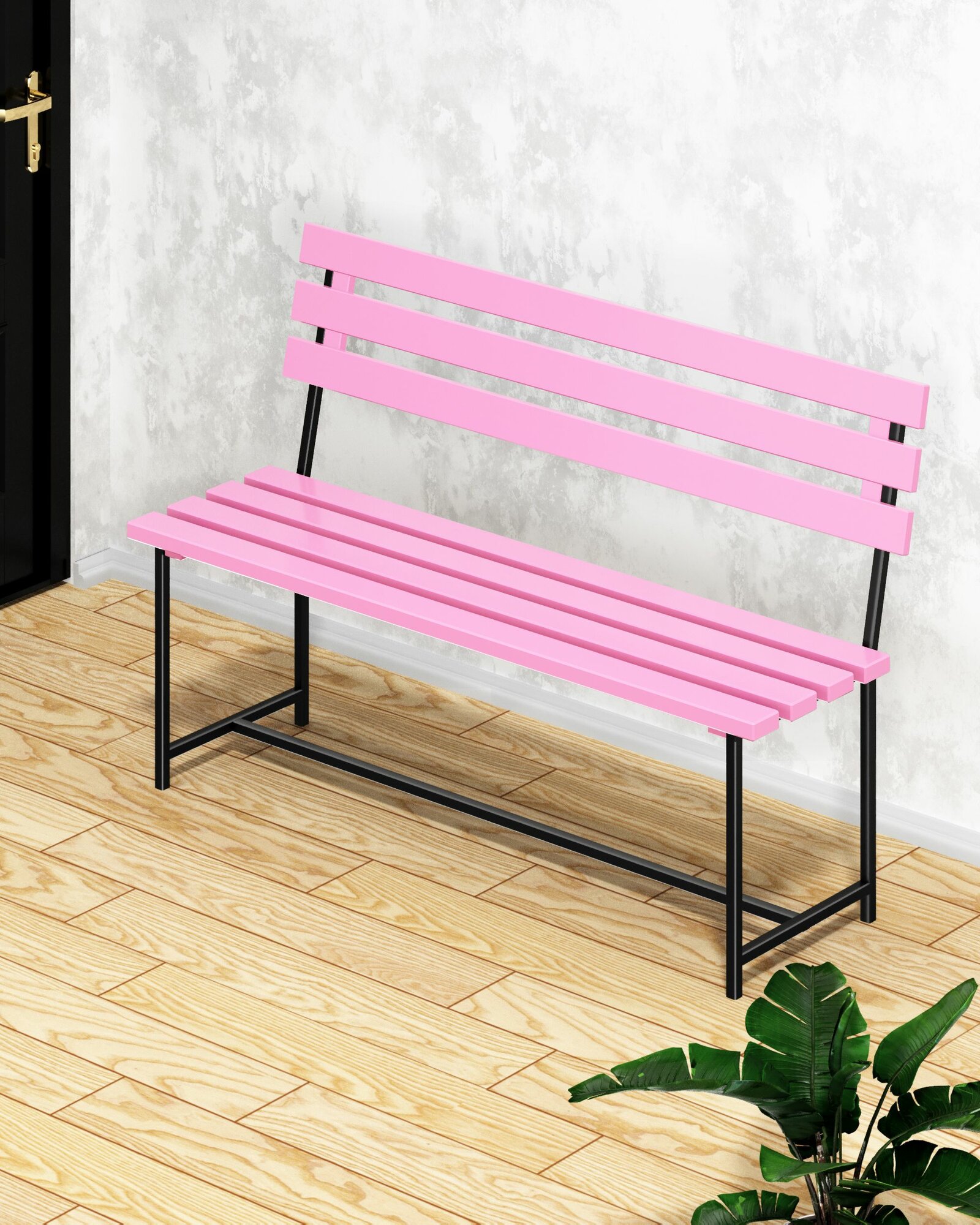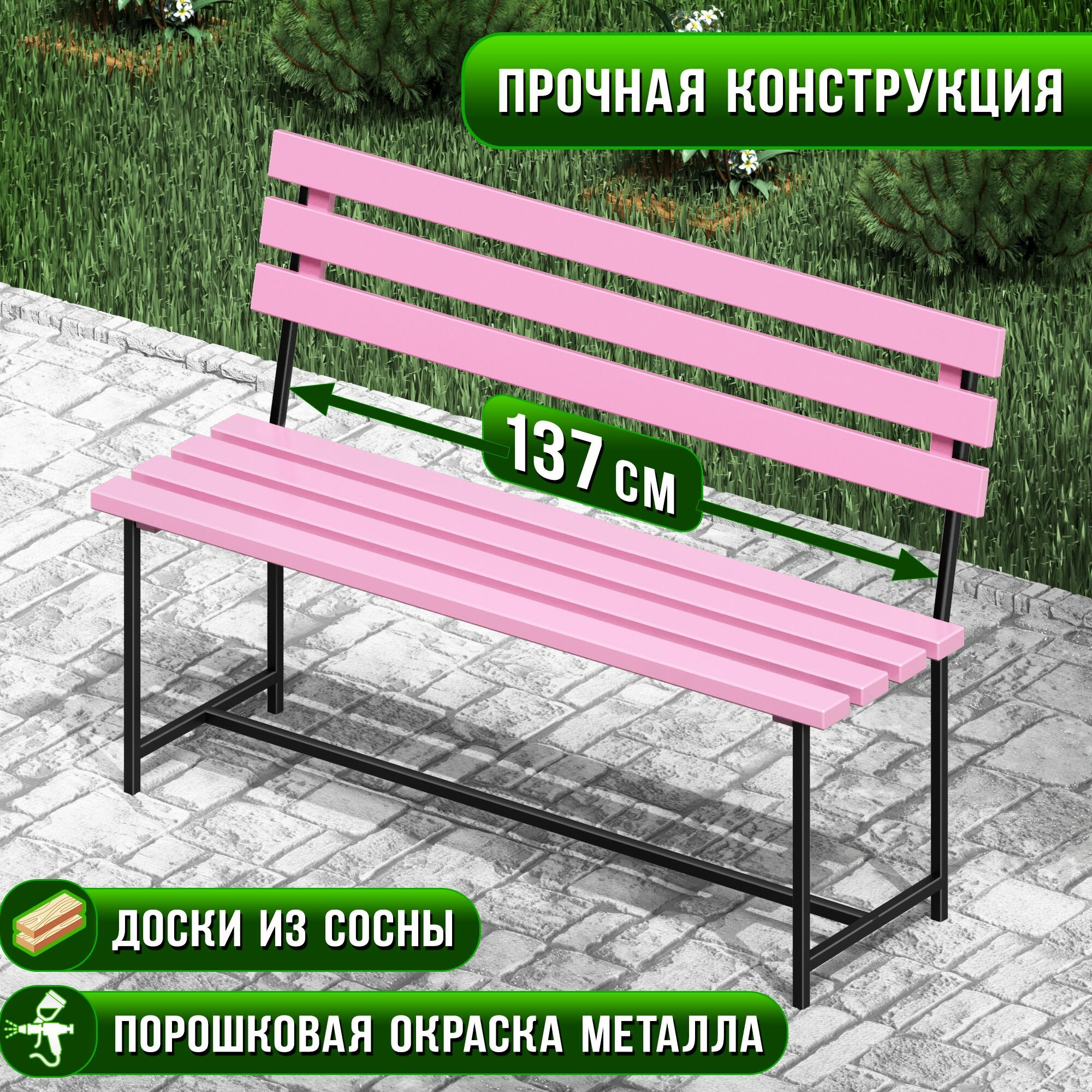 Скамейка садовая Классика с деревянными спинкой и сиденьем розового цвета, лавочка для дачи с металлическим каркасом интересное: