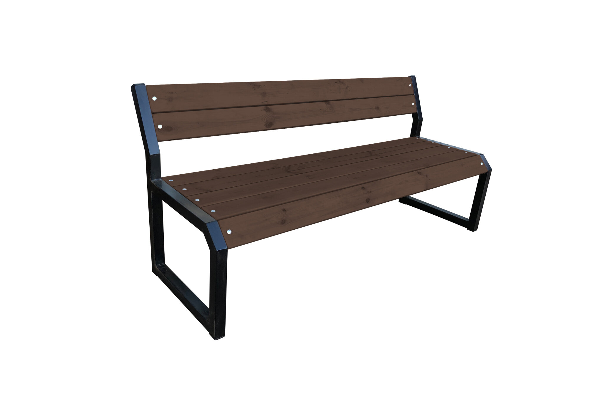 Скамейка садовая Классика с деревянными спинкой и сиденьем без покраски, лавочка для дачи с металлическим каркасом