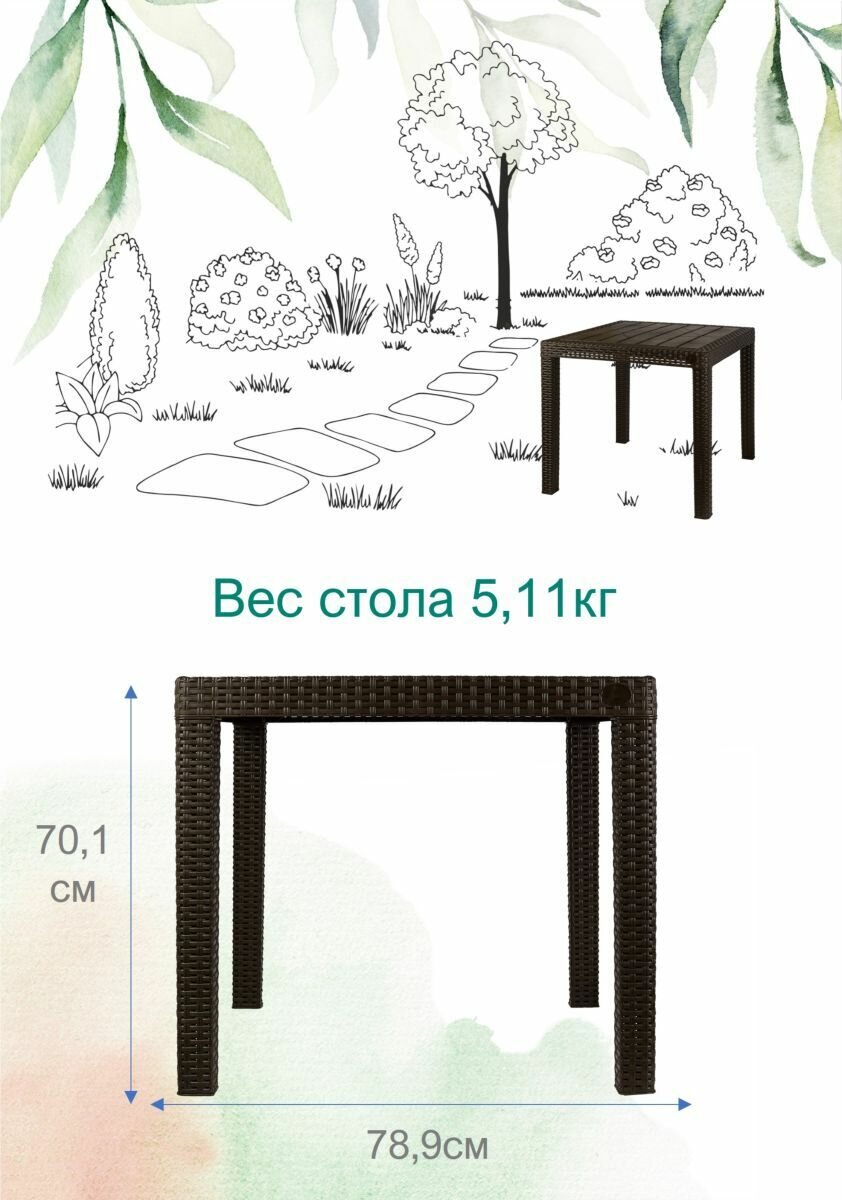 Стол садовый InGreen Rattan, 78,9 x 78,9 x 70,1 см, горький шоколад интересное: