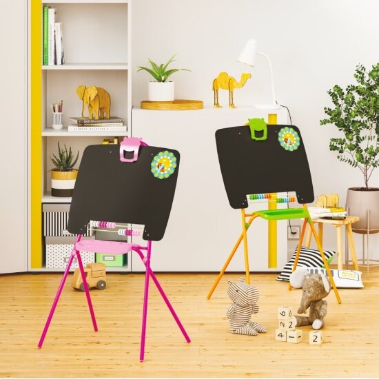 | Плюсы: | Можно рисовать мелом, прикреплять бумагу различного размера, изучать время на часах, на счетах - цвет, счет. Цена нормальная. |
