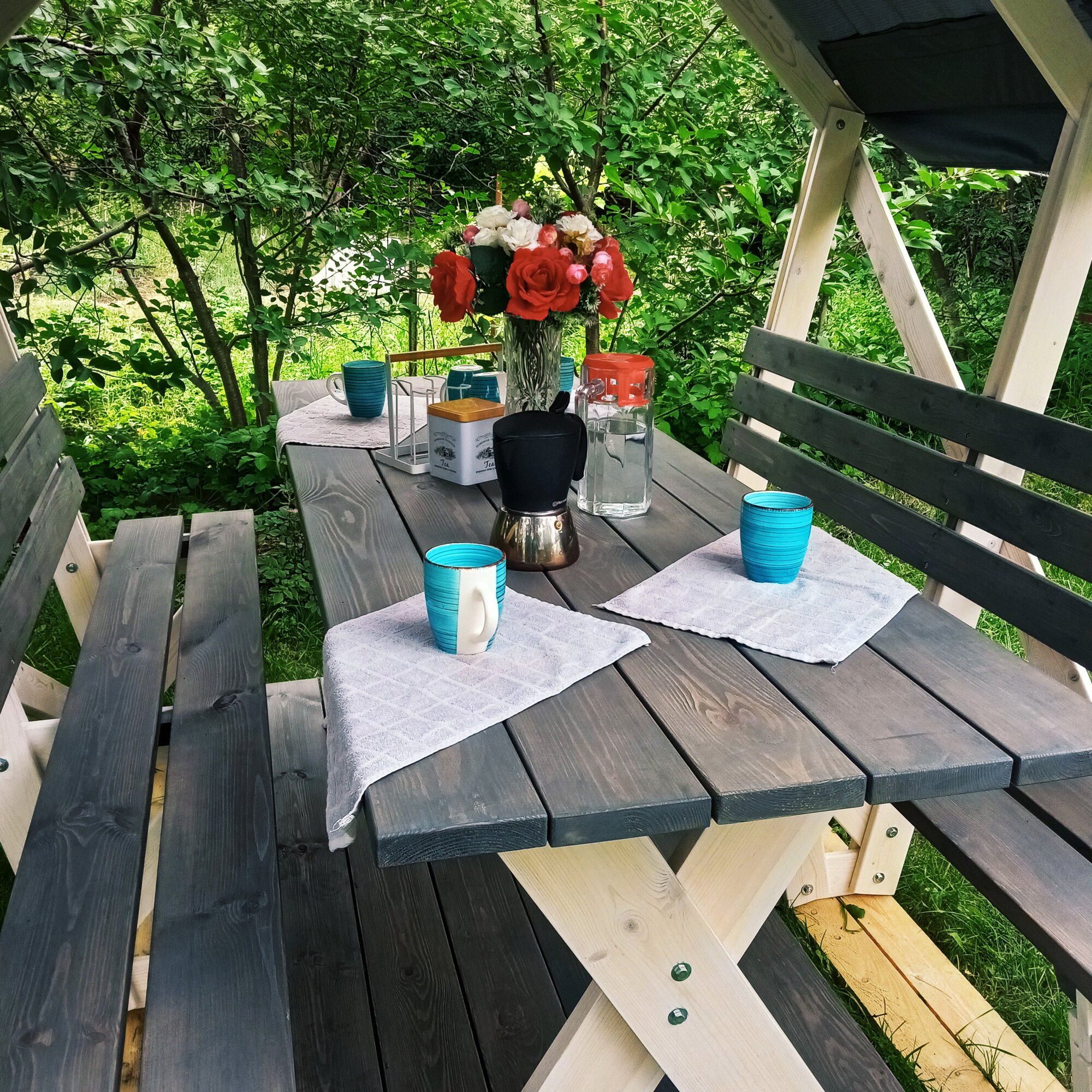 Садовая мебель РУСКЕА "Стол Семейный натуральное дерево", массив сосны, 195х70