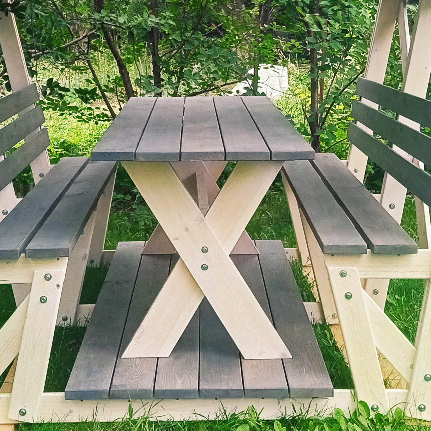 Стол РУСКЕА "Семейный", 145 см, серый/белый, масло Tikkurila интересное: