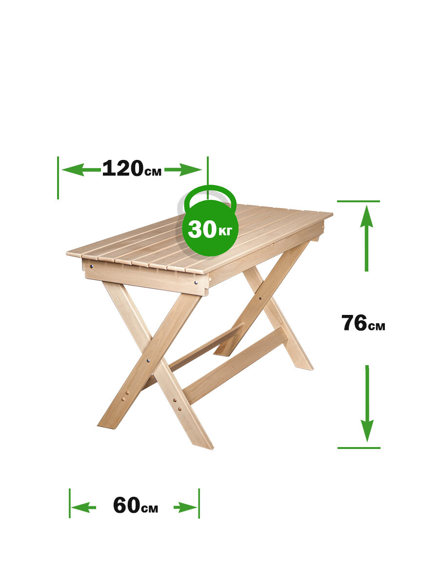 Купить Стол садовый складной 120х60х76 массив липы / стол обеденный / деревянный / для дачи / для бани