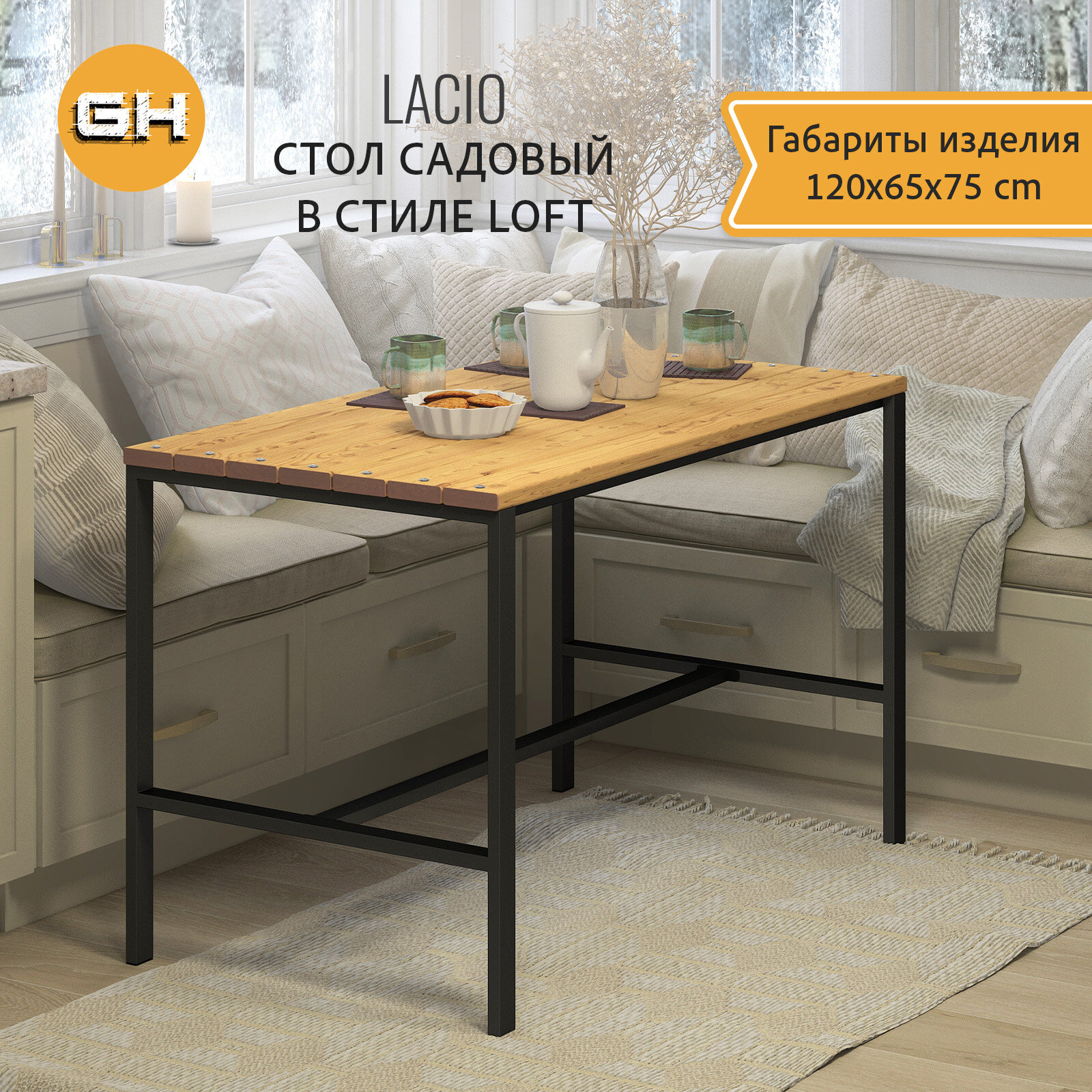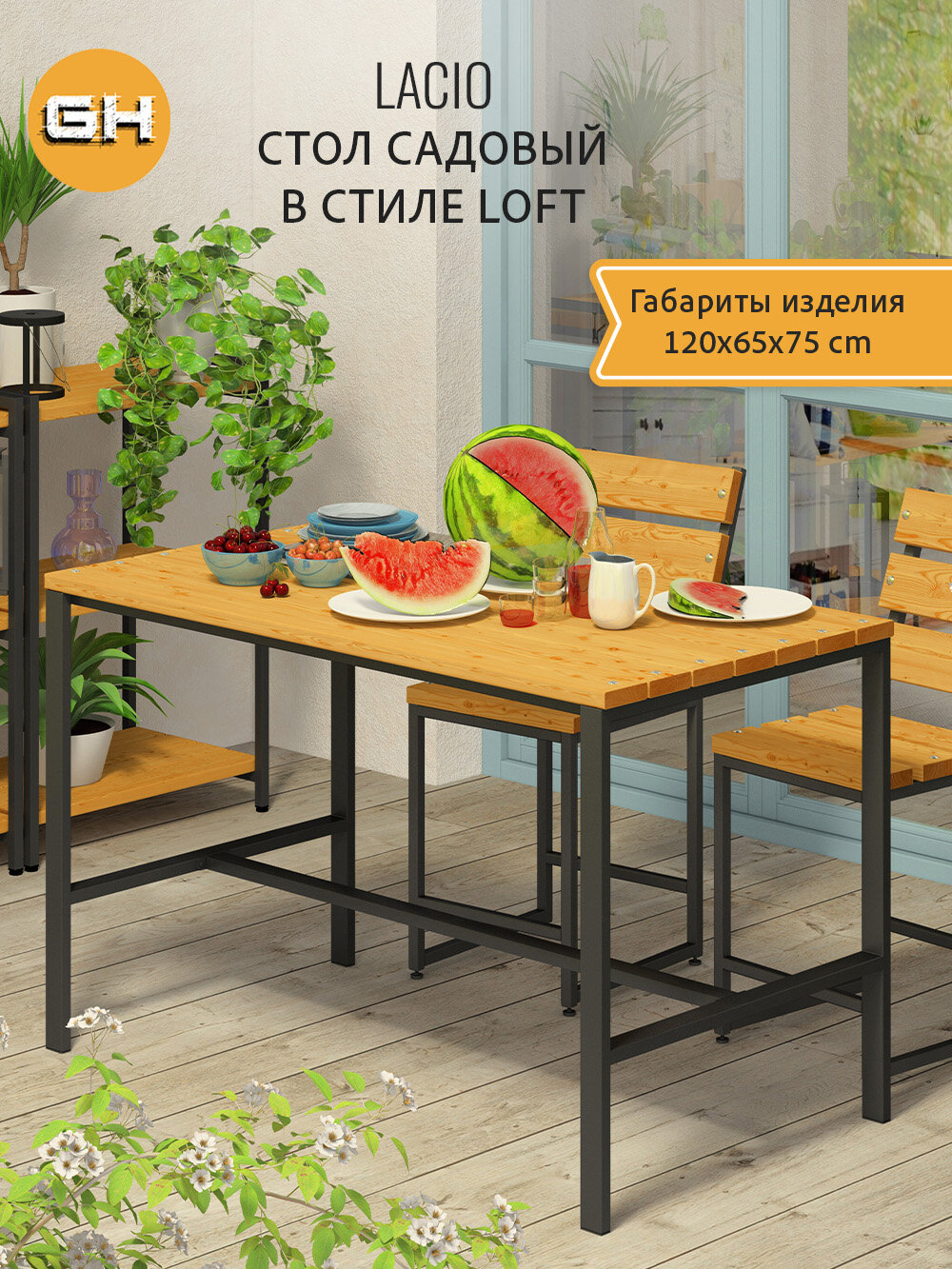 Стол садовый LACIO plus loft, стол деревянный для дачи, стол уличный металлический, 120х60х75 см, 1шт, гростат
