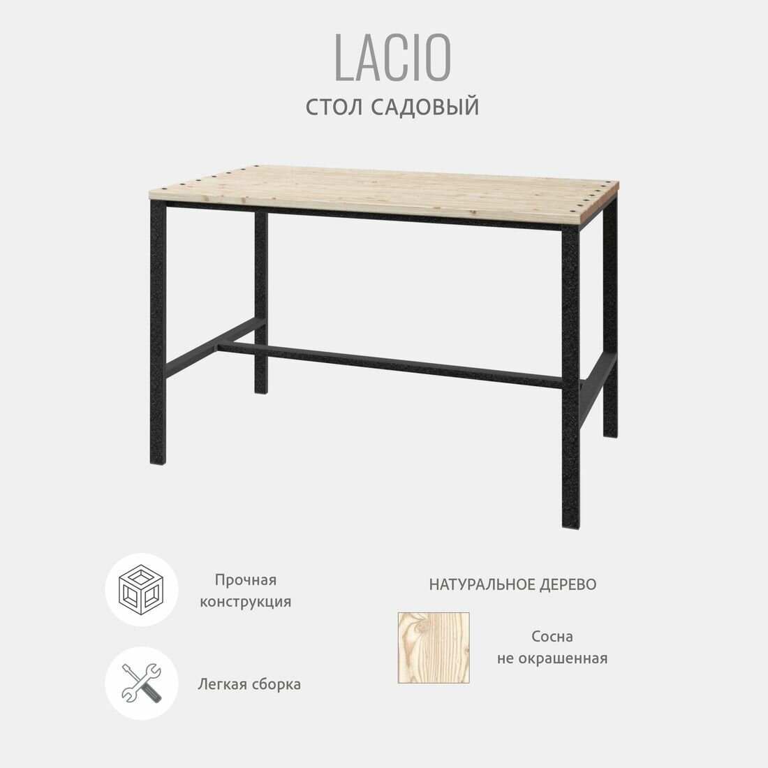 Стол садовый LACIO plus loft, стол деревянный для дачи, стол уличный металлический, 120х60х75 см, 1шт, гростат интересное: