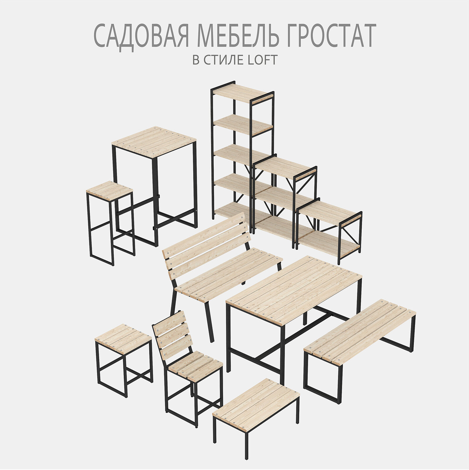 Стол садовый LACIO loft, серый, стол деревянный для дачи, стол уличный металлический, 120х60х75 см, гростат