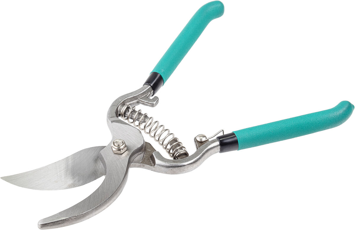 Секатор для сада, секатор универсальный, пружинный привод, стальные плоскостные лезвия
