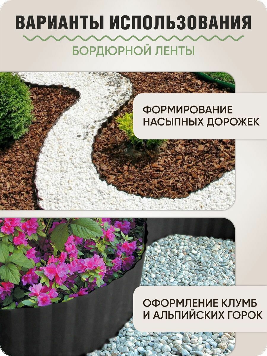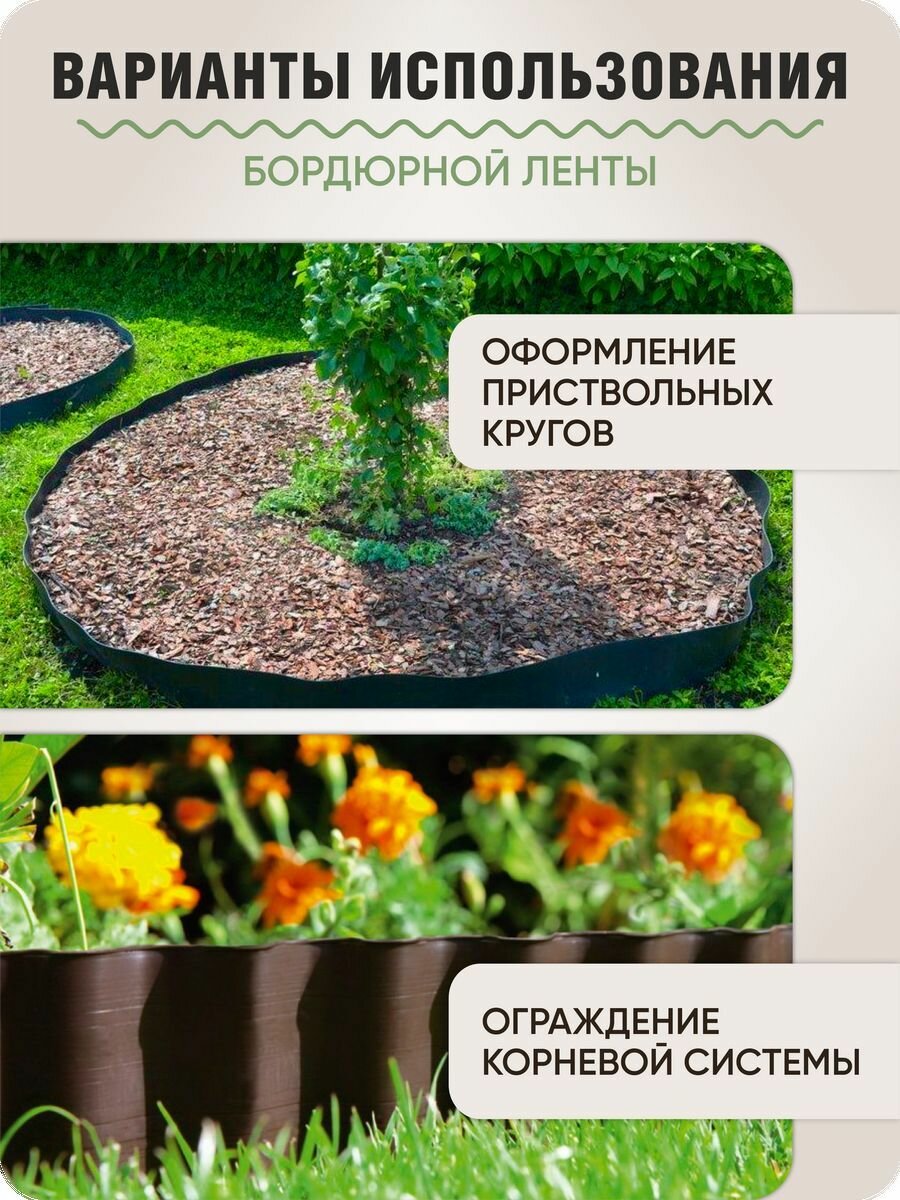 Бордюрная лента садовая 10 см, длина рулона 20 м, толщина 2-2,5 мм.