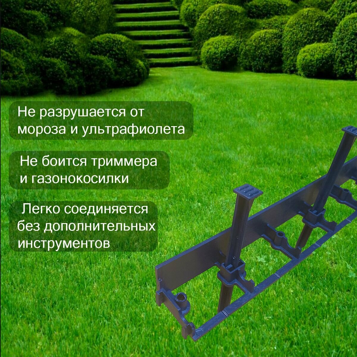 | Подробная комплектация | Комплект состоит из 6 штук метровых секция бордюра |