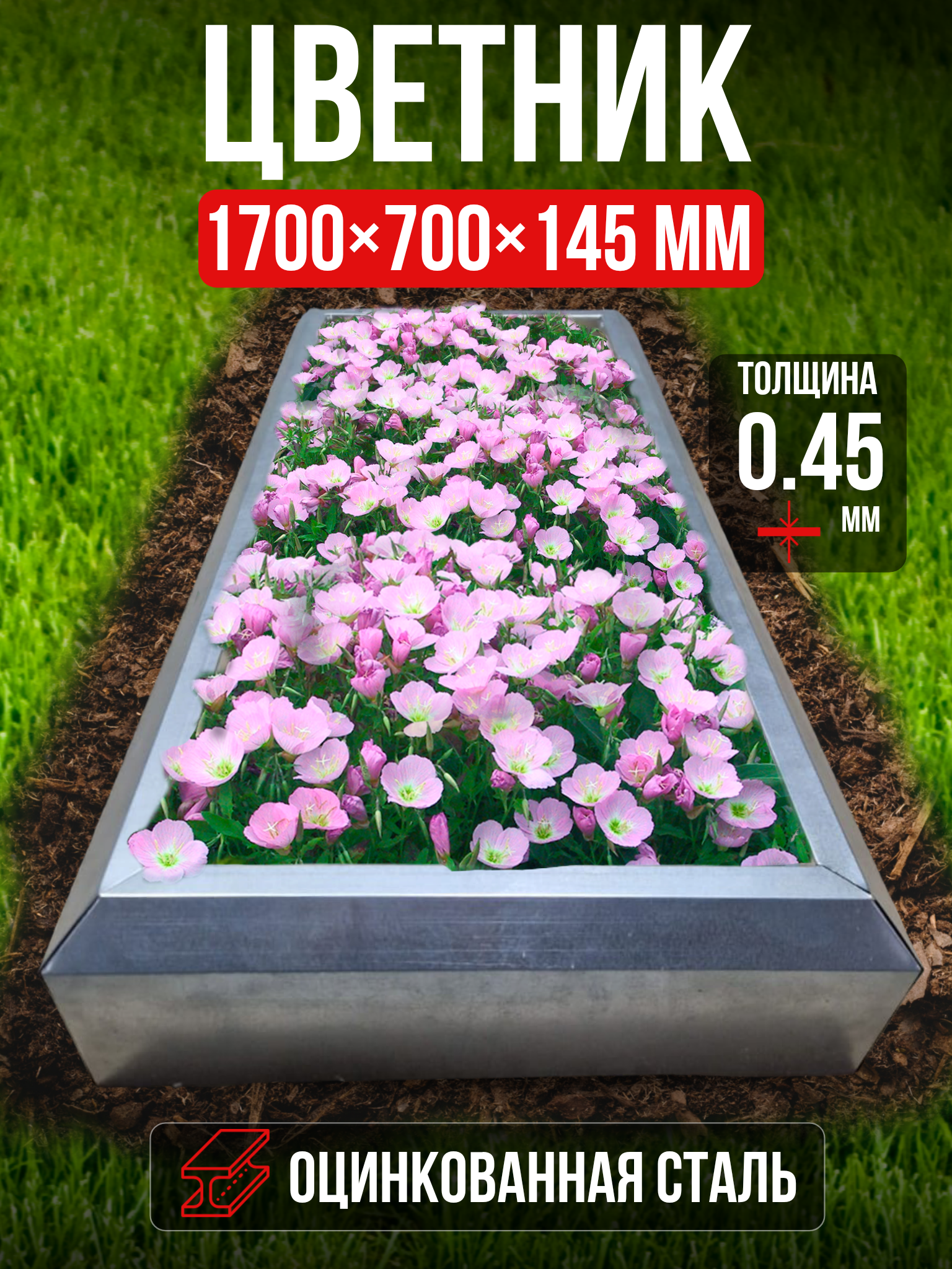 Цветник из цинкованной стали, клумба садовая, размер 0.7х1.7м интересное:
