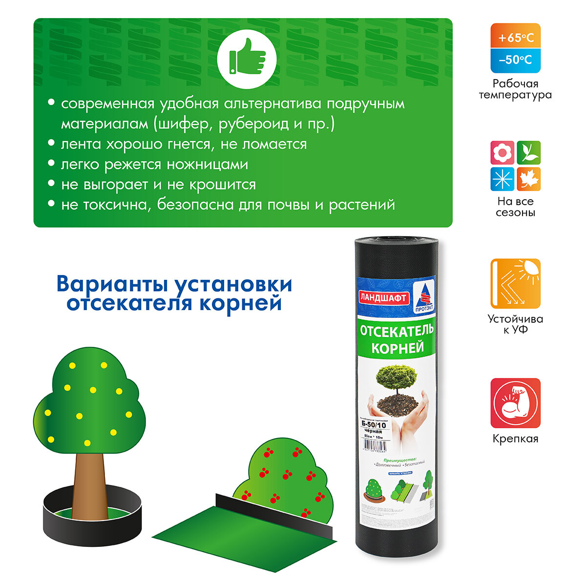 | Подробная комплектация | Отсекатель корней - 1 рулон |