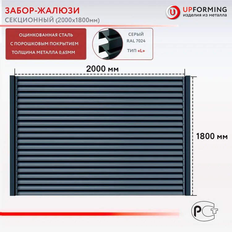 Забор-жалюзи, тип L, секция 2.0х1.8 м, цвет – серый 7024 интересное: