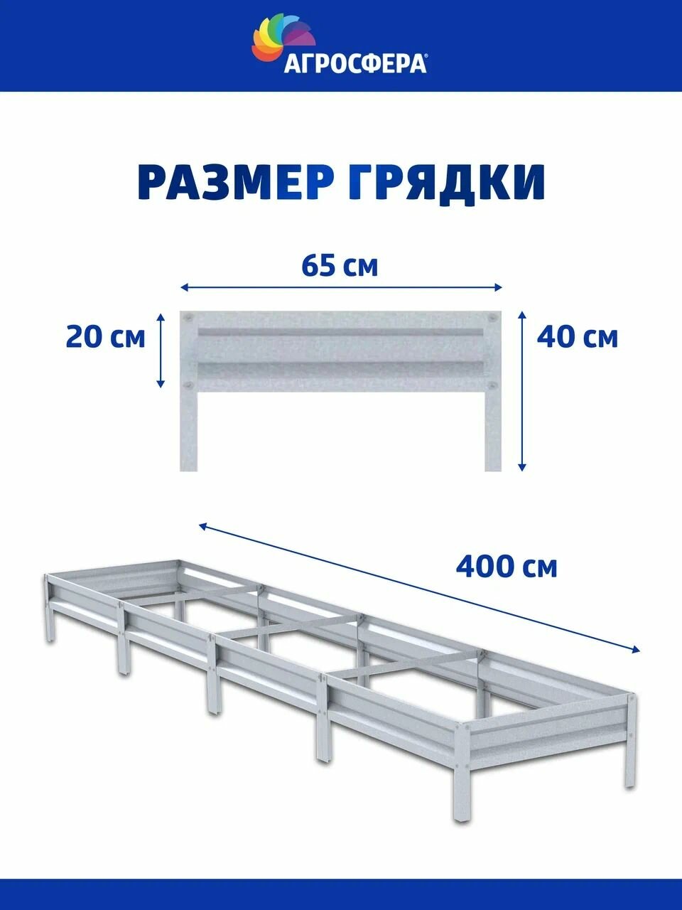 Грядка оцинкованная с полимерным покрытием 1 х 4 м (100 х 400 см), Н: 20 см