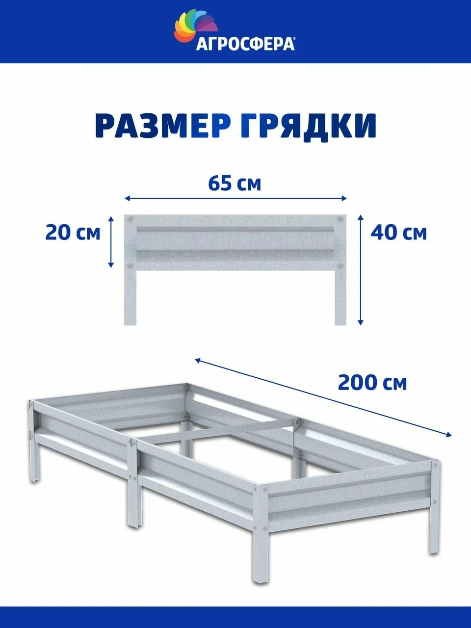 Грядка оцинкованная с полимерным покрытием 0,65 х 2 м, Н: 20 см