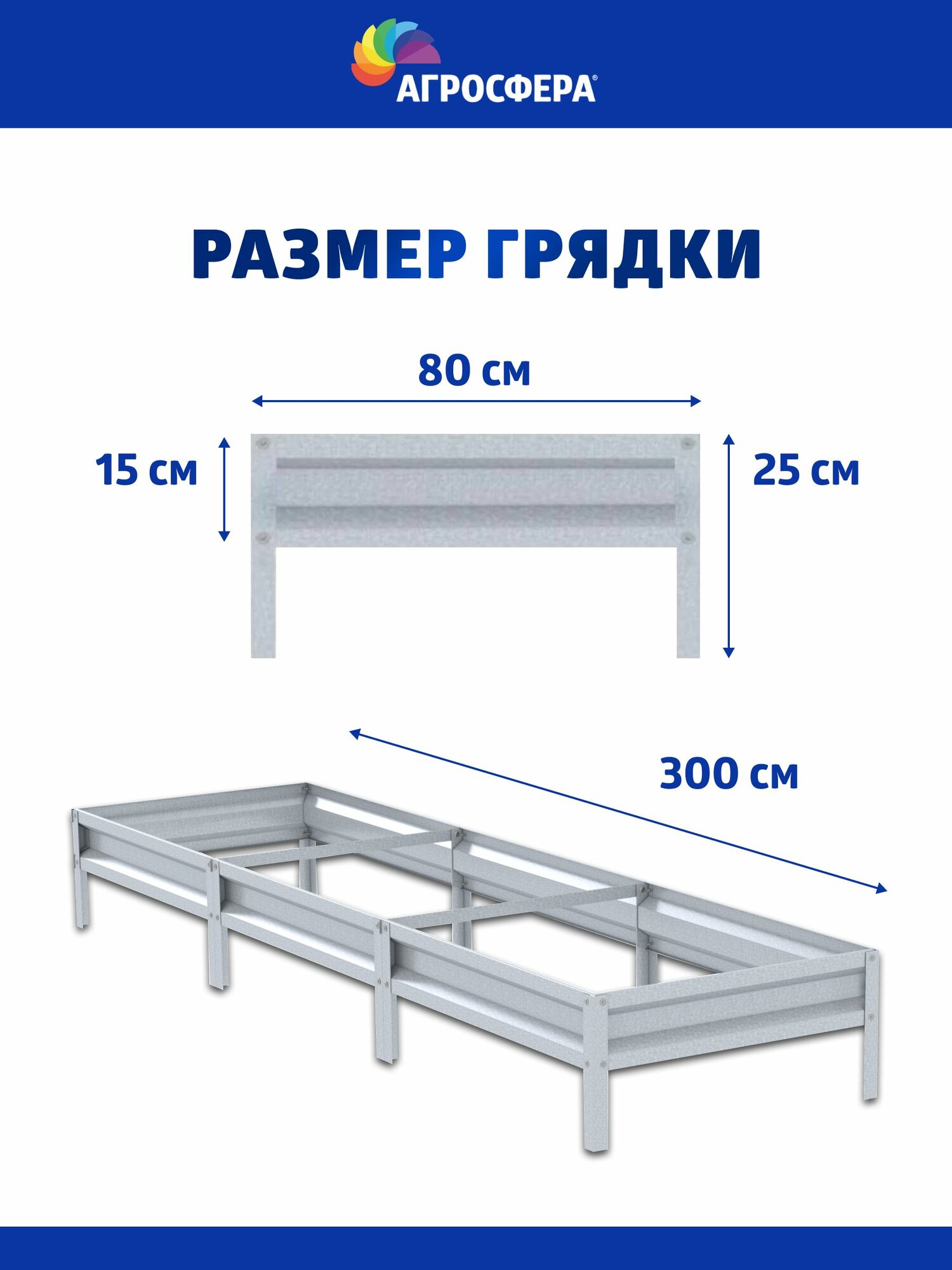 Грядка оцинкованная 1 х 3 м (100 х 300 см), Н: 20 см