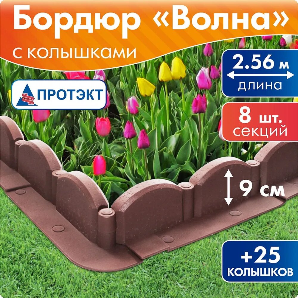 Бордюр садовый Волна с колышками 9 см * 2,56 м, Протэкт интересное: