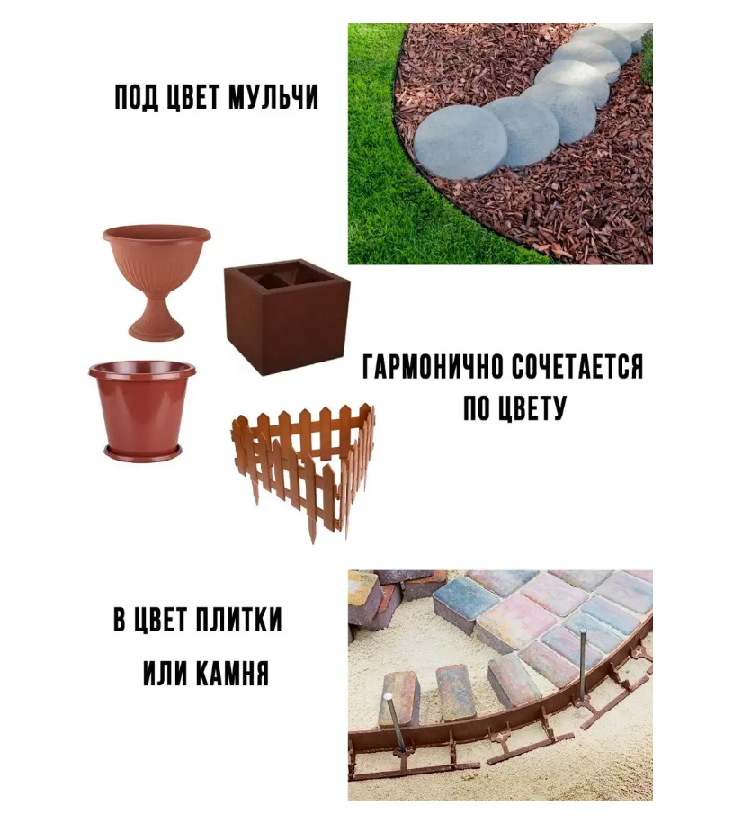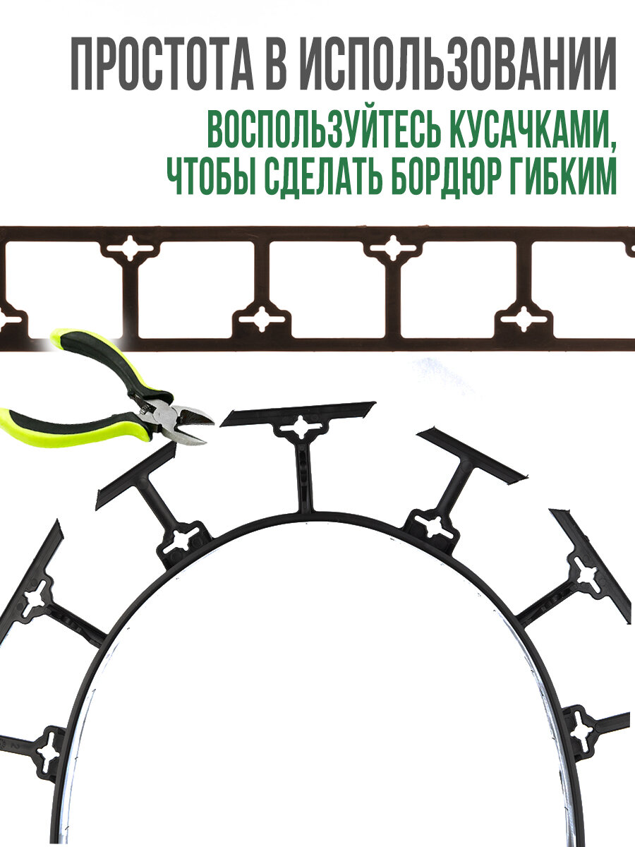 | Дополнительная информация | Бордюр изготовлен из высококачественного полипропилена. При надрезании перемычек легко принимает нужную форму. Нет необходимости в дополнительном нагреве. |