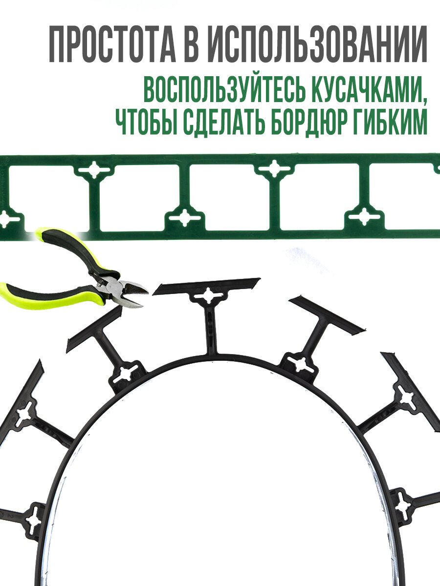 Бордюр садовый пластиковый для дачи 8 метров высота 45 мм с кольями цвет зеленый