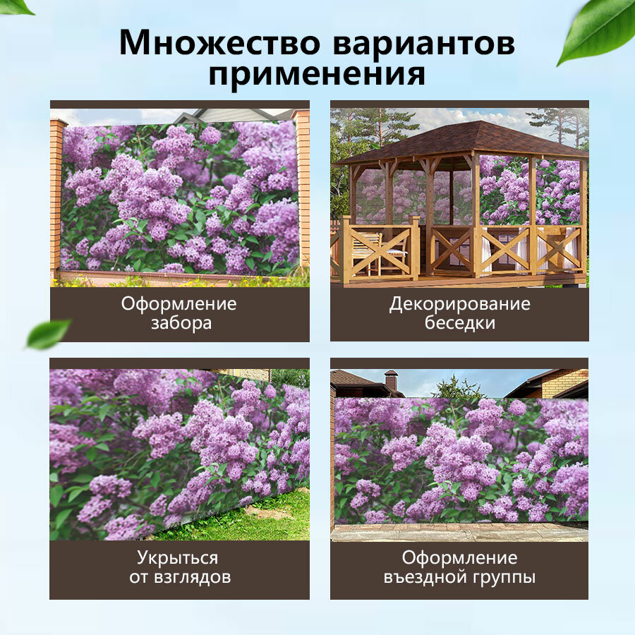 Купить Фотосетка для забора 300х158 и беседок террас фасадов - комплектующие для забора и ворот Живая изгородь "Сирень"