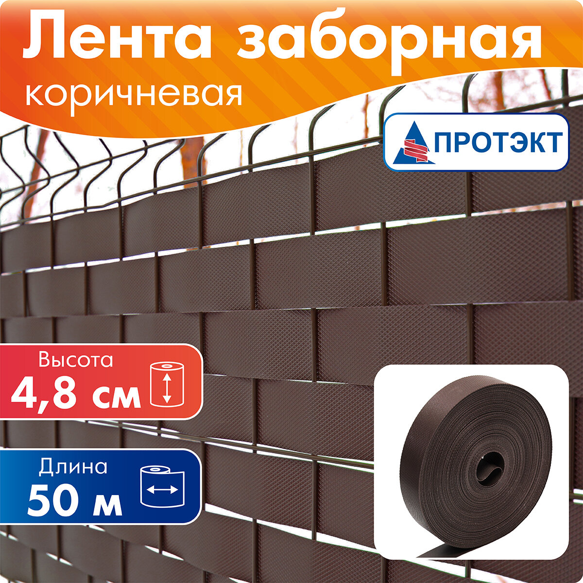 Купить Протэкт ЛЗ-48/50 Лента для забора рабица, 3Д, ширина 48 мм, намотка 50.п.м. (Коричневый) ЛЗ-48/50 к