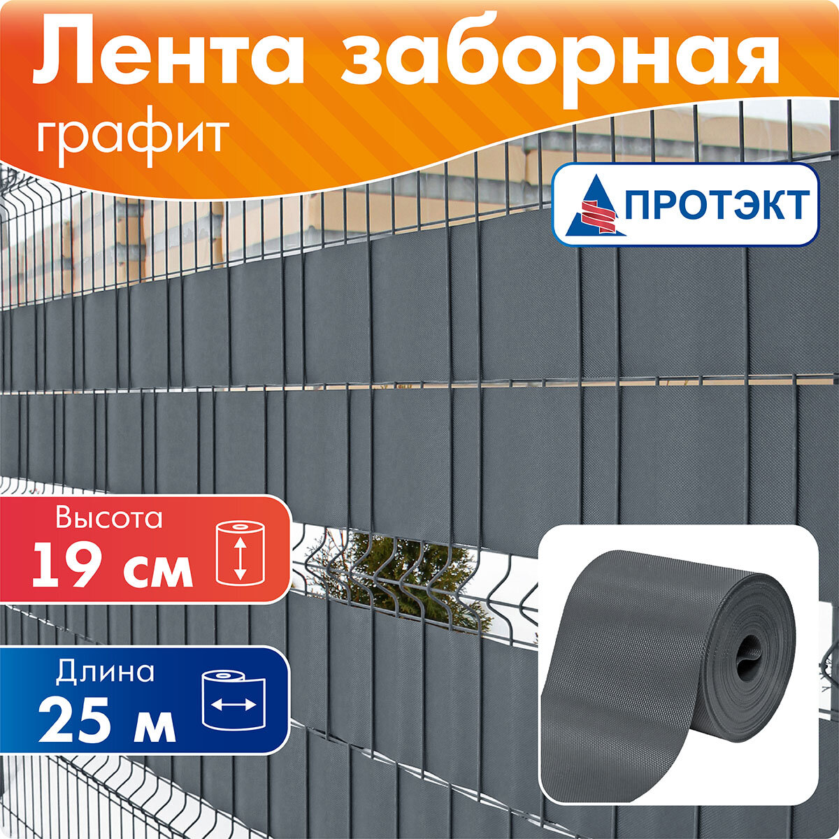 Лента для забора Протэкт 2Д/3Д/рабица 19см, 25м, графитовая