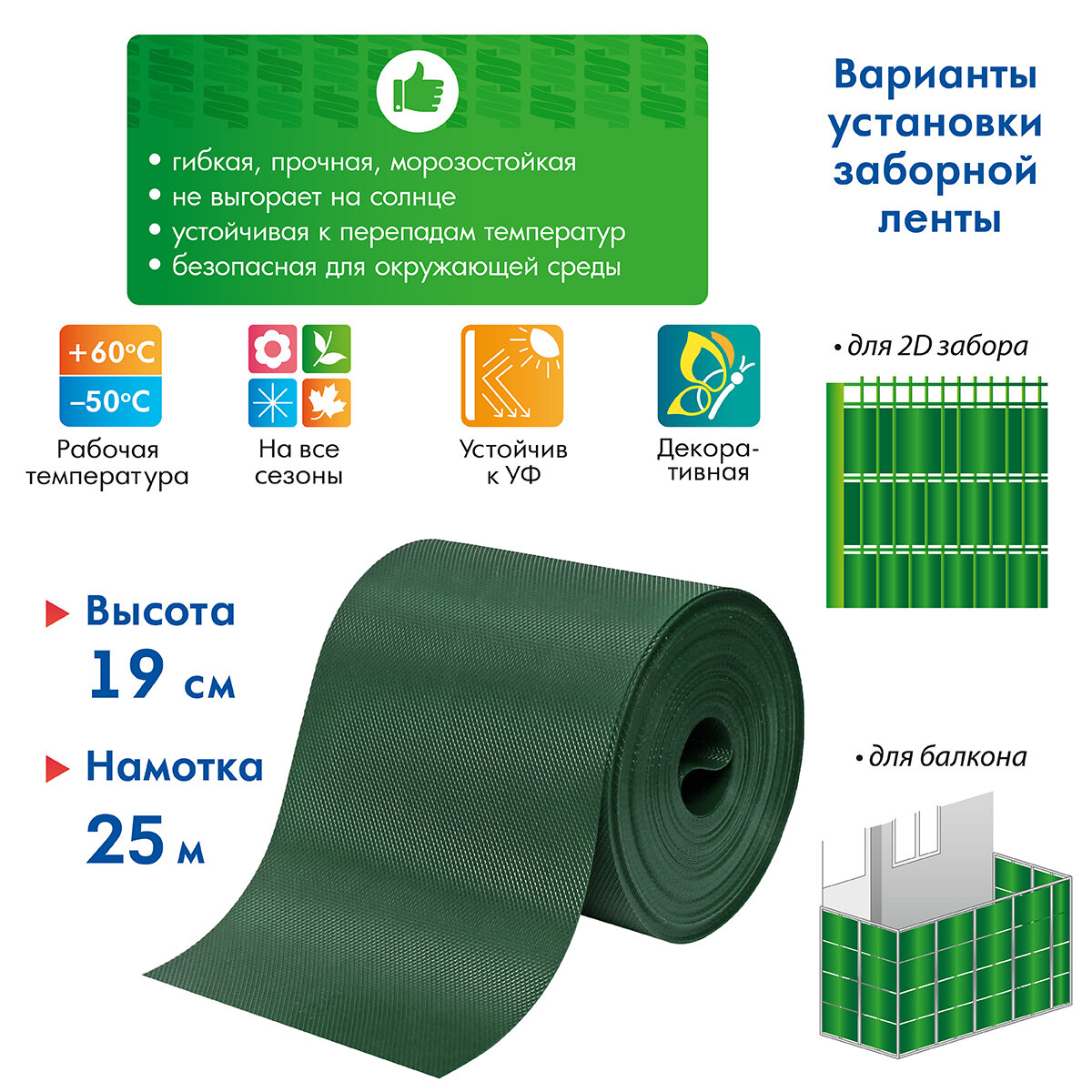 СохранитьЛента для забора 2Д, 3Д, рабицы 19 см, 25 м, хаки Протэкт интересное: