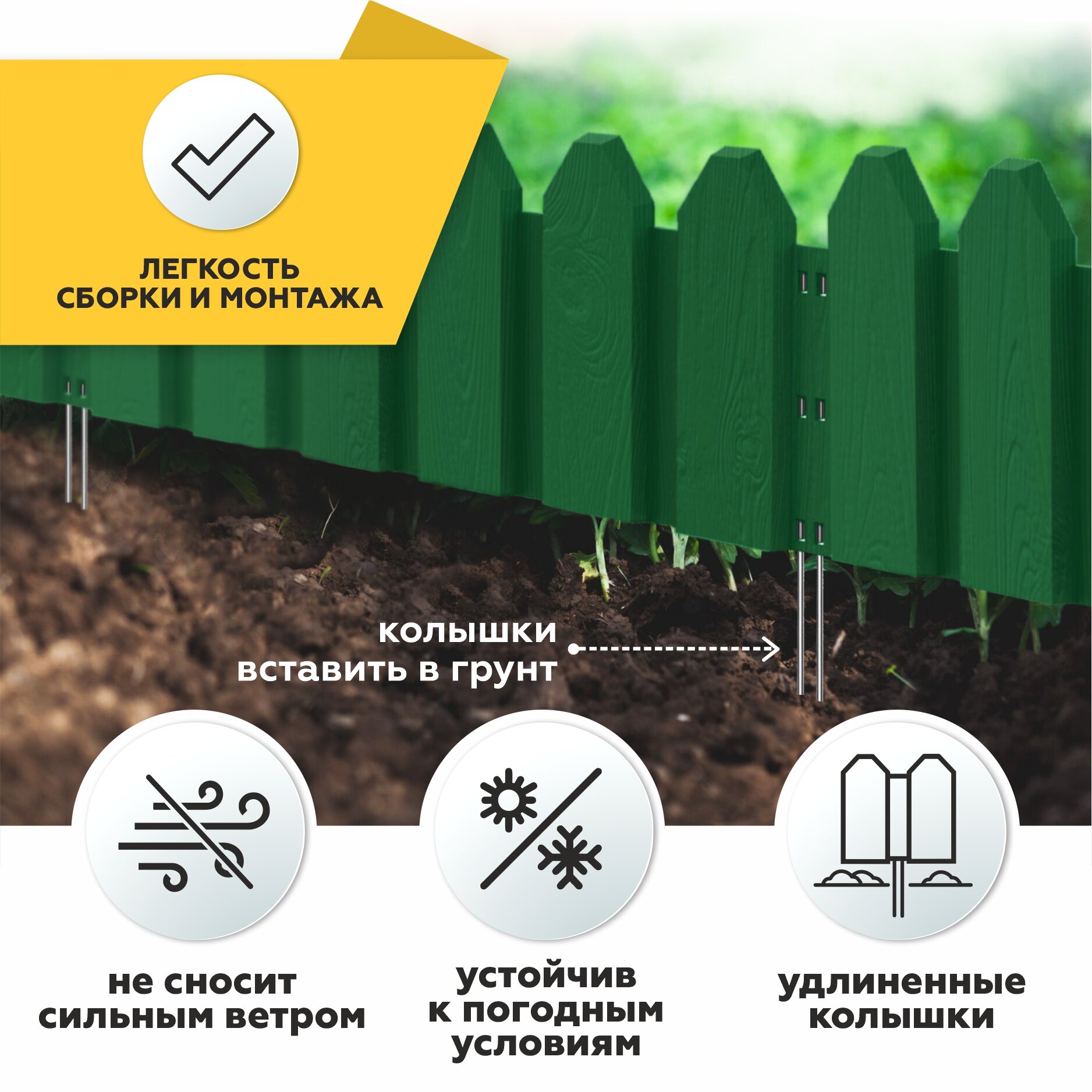 Заборчик садовый пластиковый PlastON, 8 шт. по 60 см., зеленый, декоративное садовое ограждение для клумбы