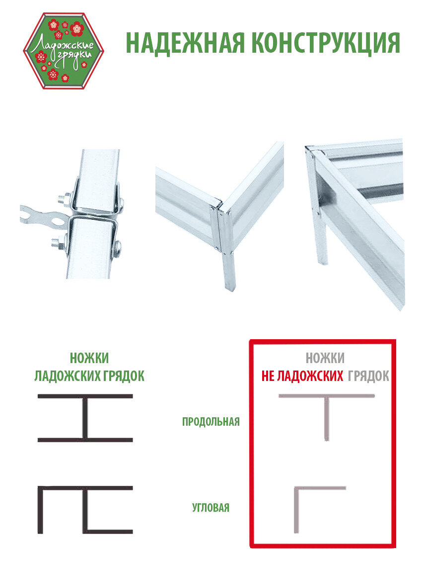 Грядка оцинкованная, ладожские грядки, усиленная 1х2 м.