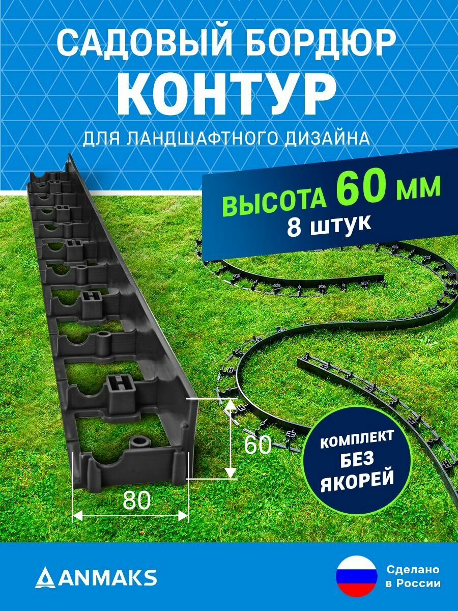 7260-К-8 Садовый бордюр пластиковый контур Б-100.06.08 черный L-1000 мм, H-60 мм, (упаковка 8 шт.) интересное: