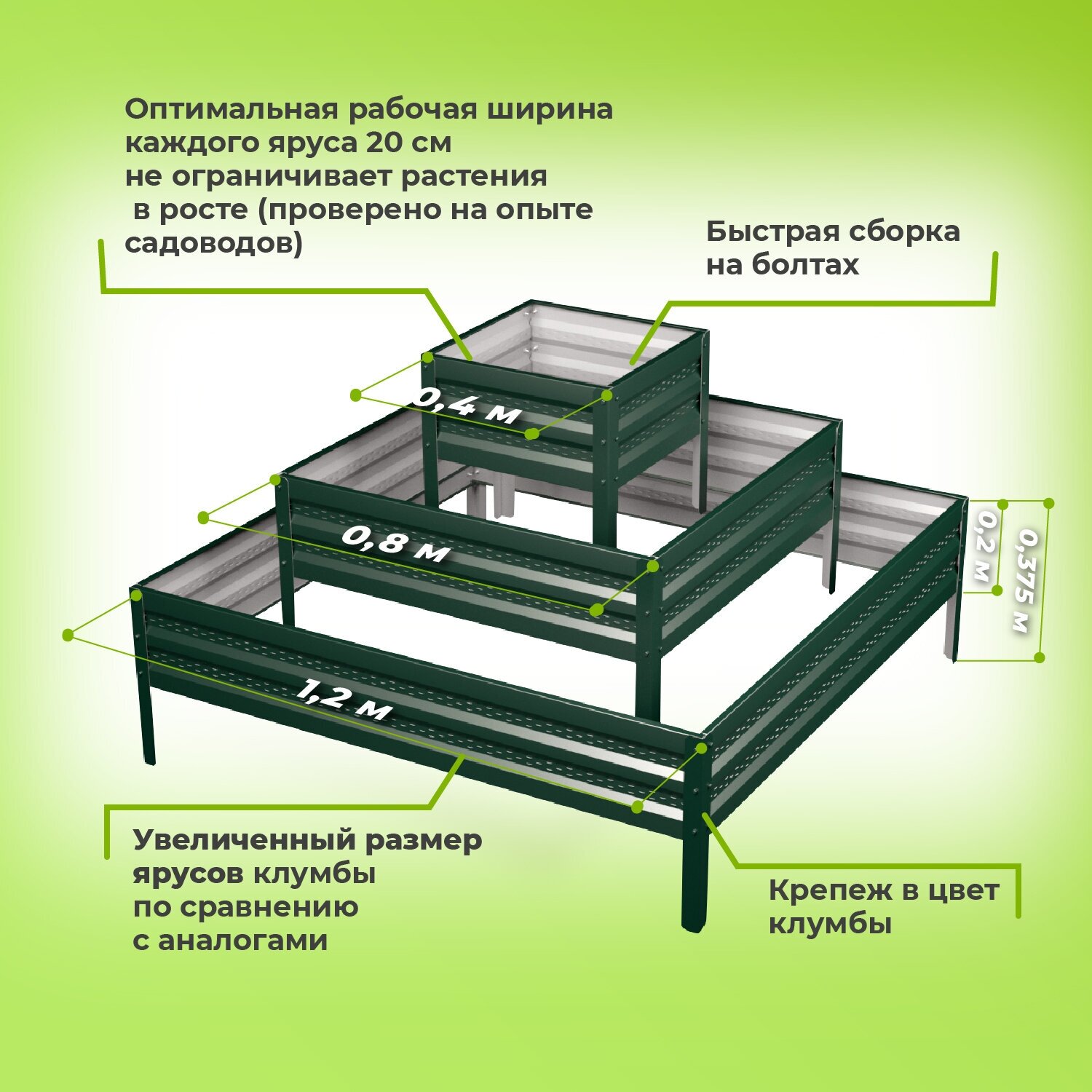 Клумба (цветник) металлическая оцинкованная трехъярусная, 3 яруса, 120*80*40, цвет: зеленый, высота 60 см интересное: