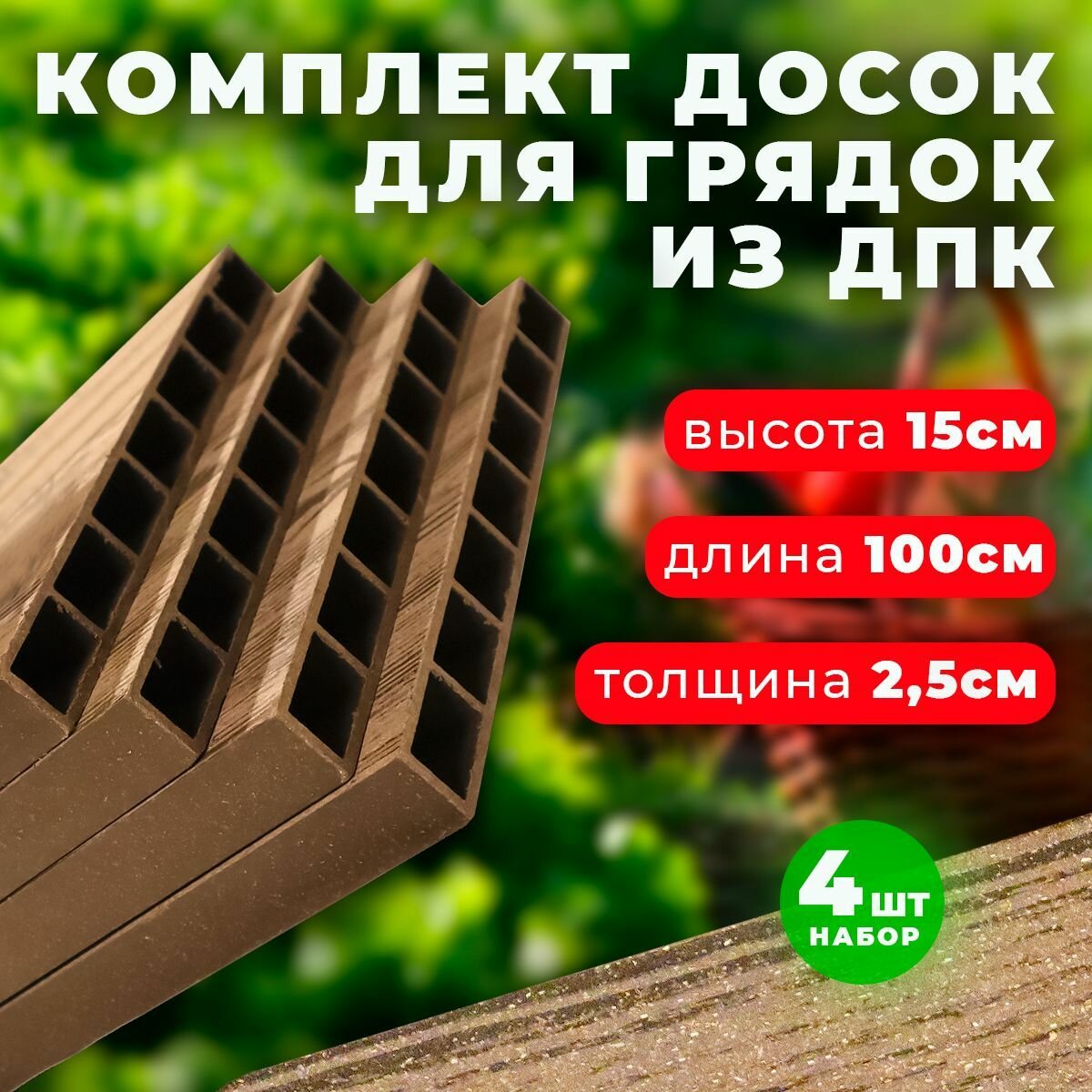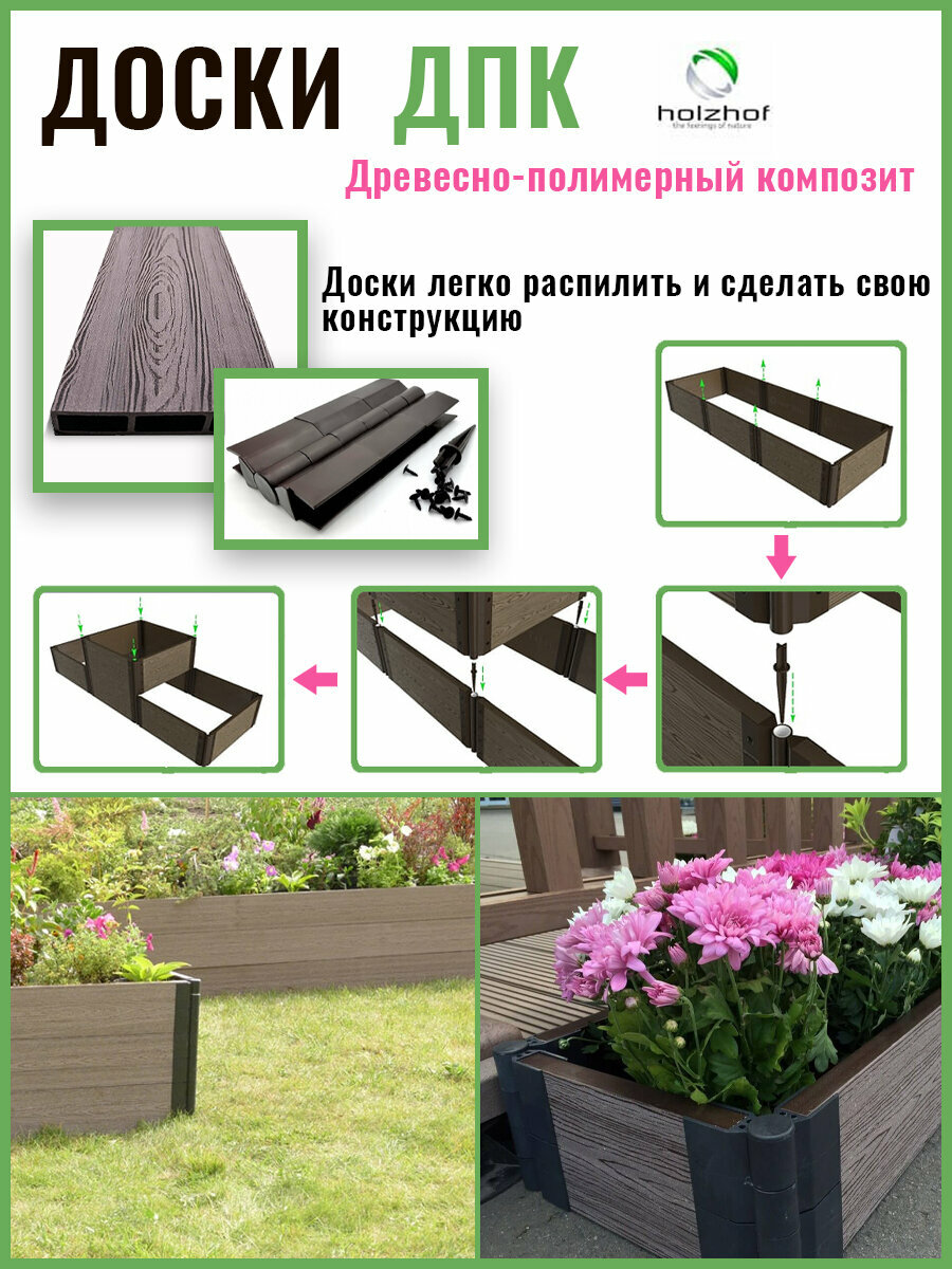 Комплект из 4-х досок ДПК Holzhof для грядок и клумб 0,15х1 м интересное: