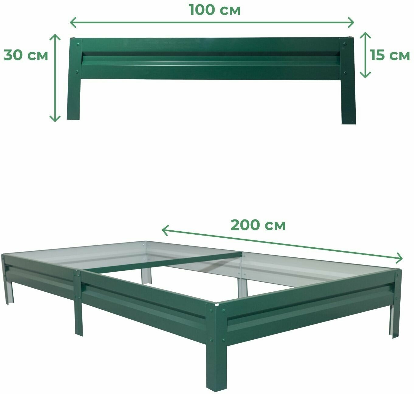 Грядка оцинкованная с полимерным покрытием 0,8х2,0 м, высота 15 см, Цвет: Зеленый мох