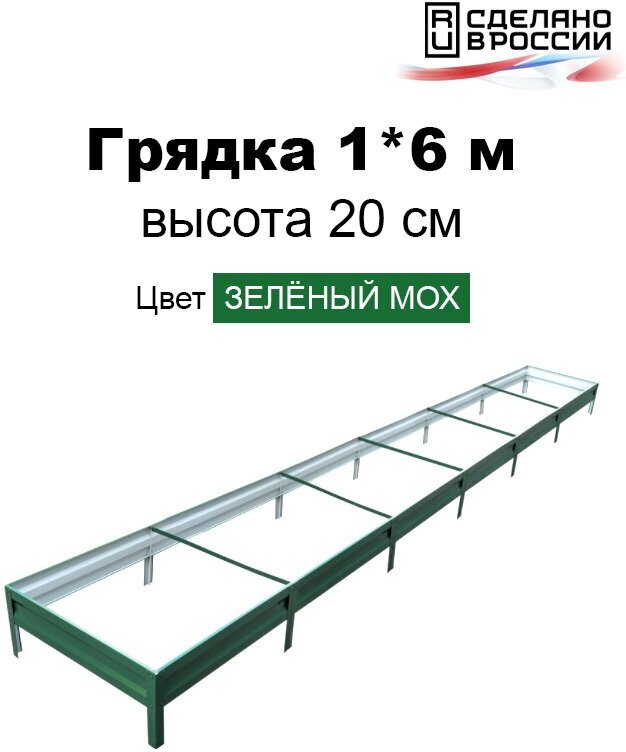 Купить Грядка оцинкованная с полимерным покрытием 1,0х6,0 м, высота 20 см, Цвет: Зеленый мох