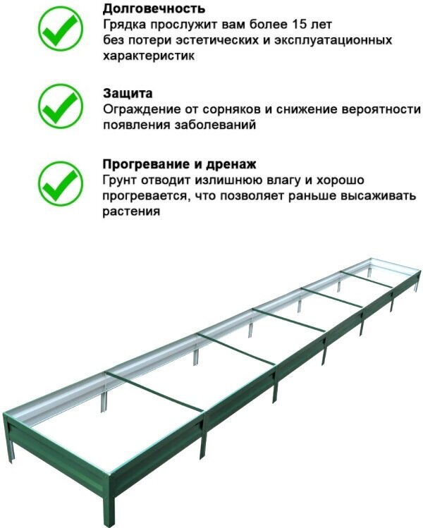 Грядка оцинкованная с полимерным покрытием 0,8х3,0 м, высота 15 см, Цвет: Зеленый мох