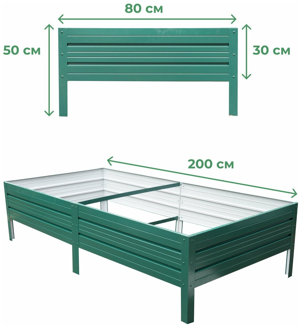 Грядка оцинкованная с полимерным покрытием 1,0х2,0 м, высота 30 см, Цвет: зеленый мох