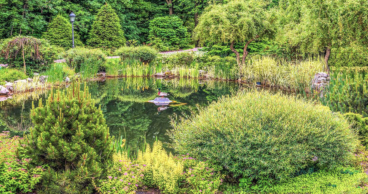 Фотобаннер Мечта для стен и сплошных заборов 300x158 см, "Пруд в парке" / Фотофасад интересное: