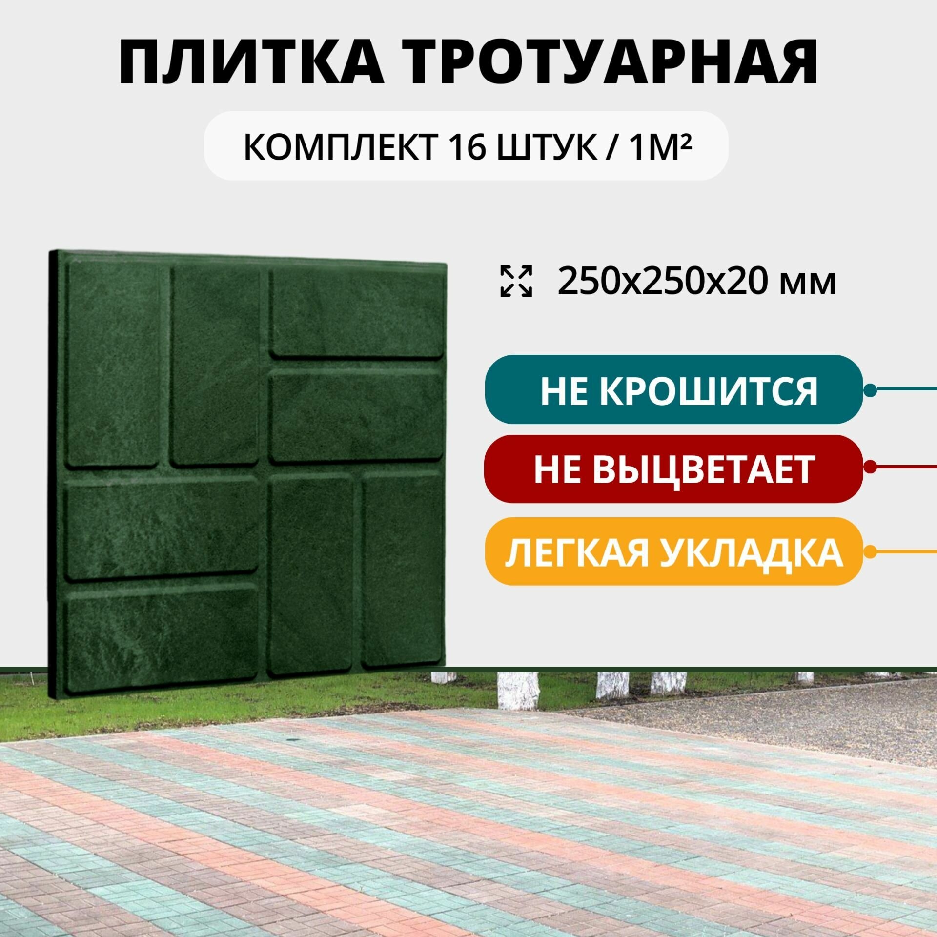 Плитка садовая полимерно-песчаная, 25х25х2 см, зеленая, 16 шт. интересное: