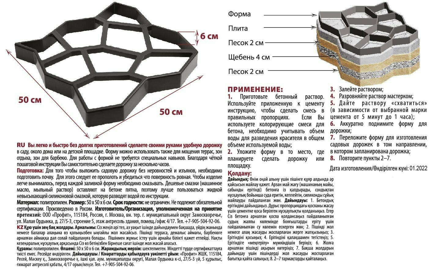 | Подробная комплектация | Форма для садовых дорожек 50х50х6 см - 2 шт |