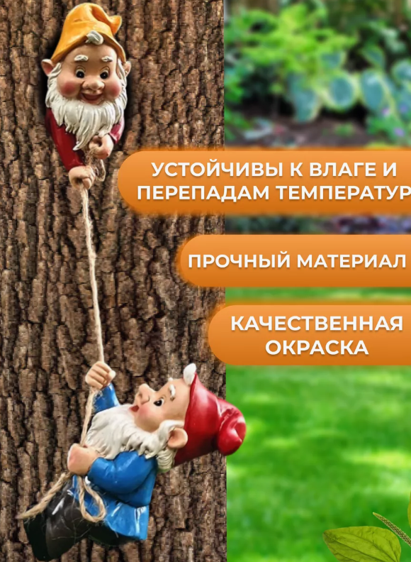 Гномики садовые на веревке интересное: