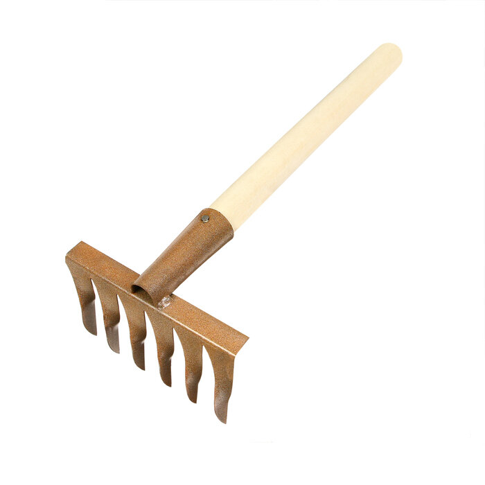 Купить Малые прямые грабли, 6 витых зубцов, длина 31 см, металл, деревянная ручка