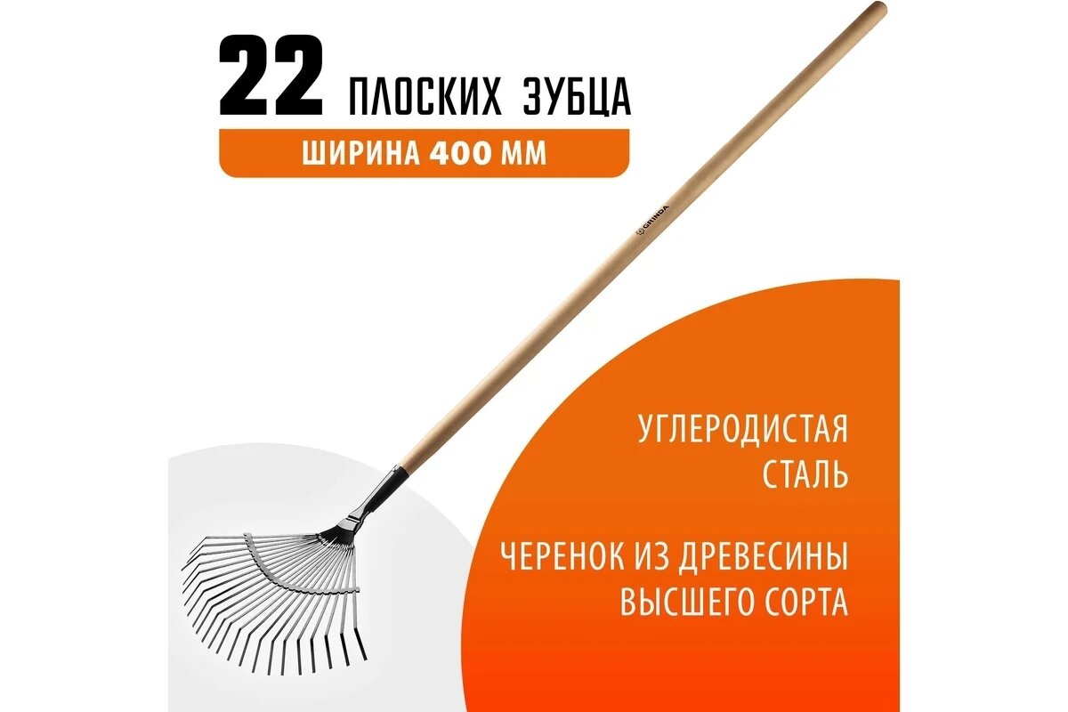 GRINDA 22 плоских зубца, 440х260х1500 мм, грабли садовые веерные, с деревянным черенком